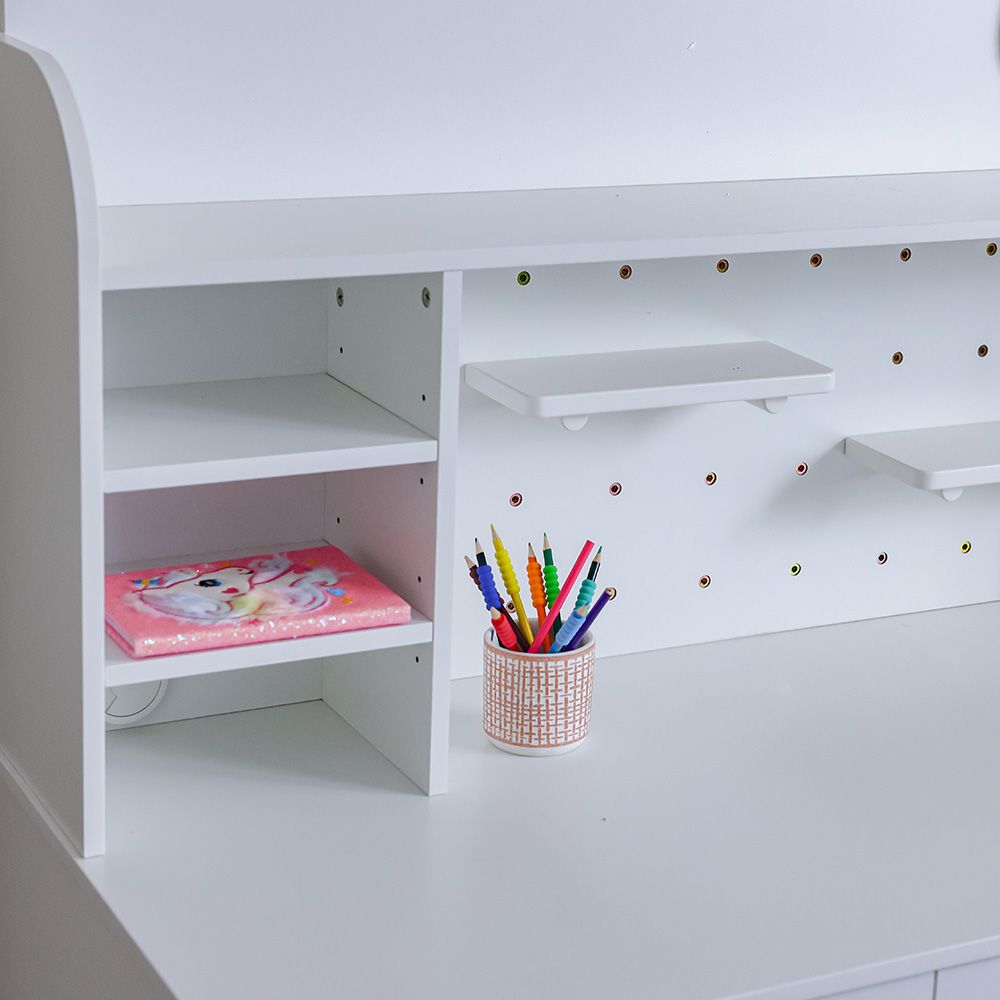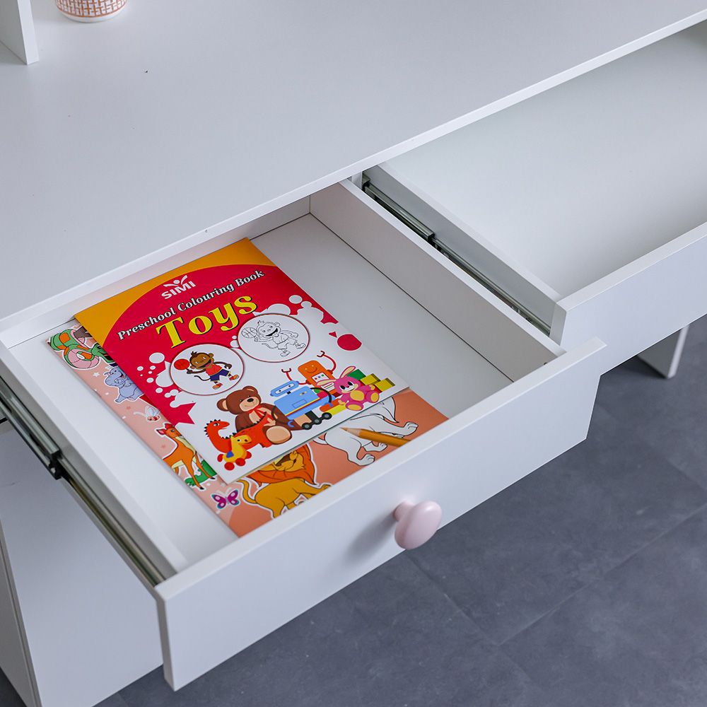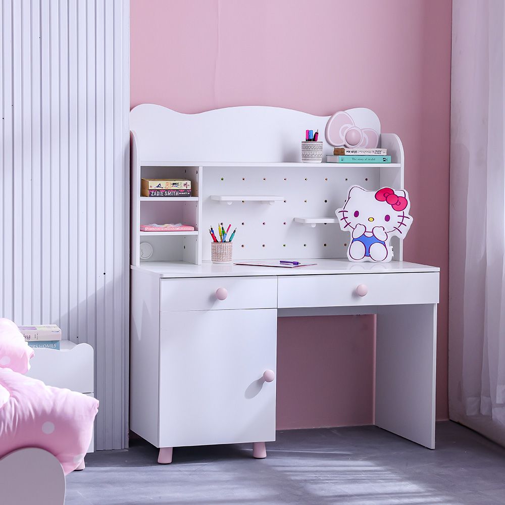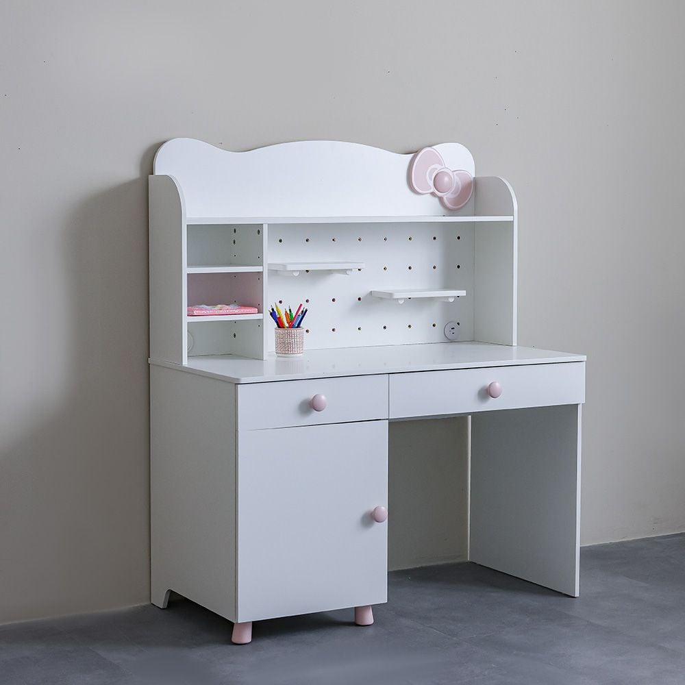 Kitty 2Drawers 1Door Study Desk & Hutch With USB-White+Pink