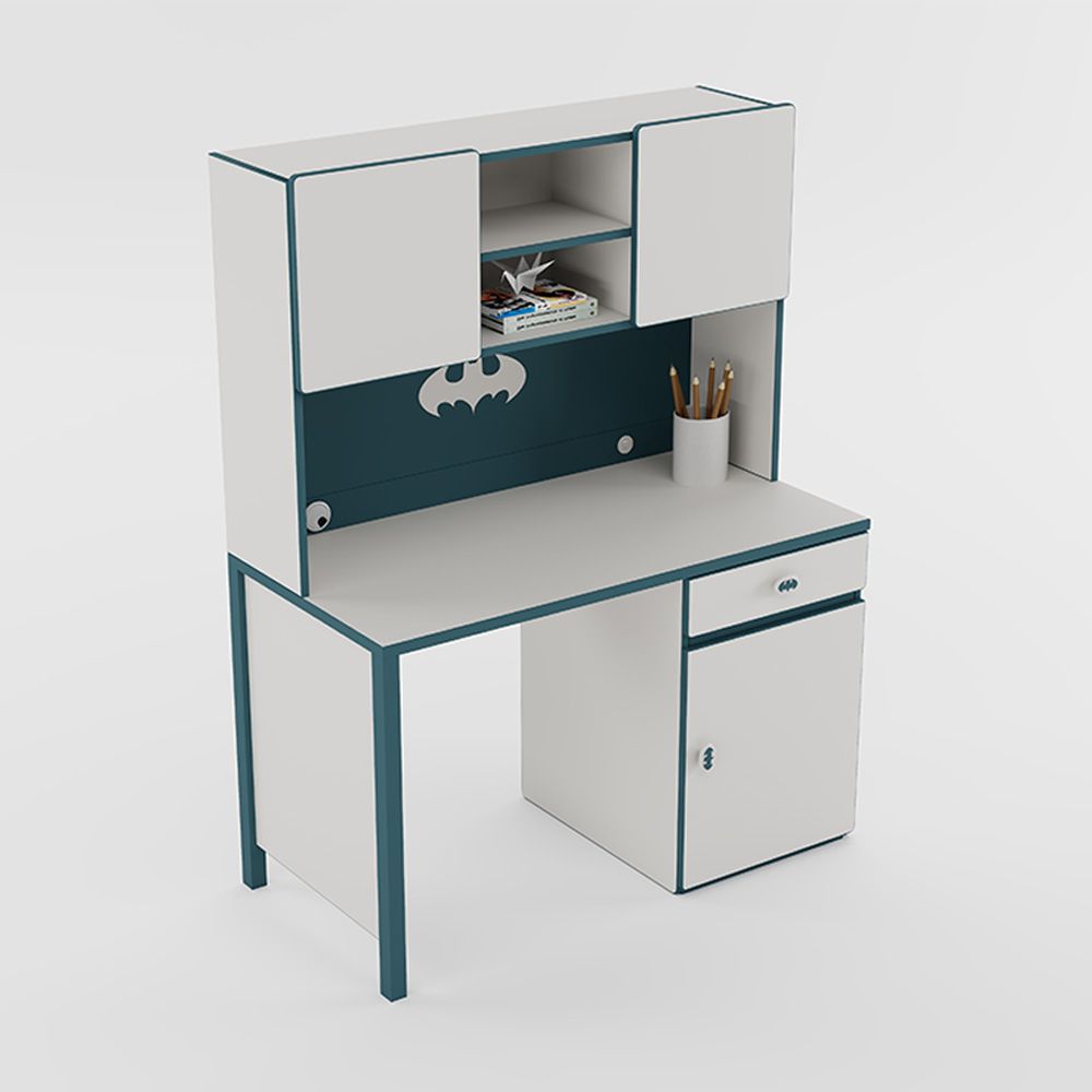 Knight 1Drawers 1Door Study Desk & Hutch W/Usb-White+Teal+Blue