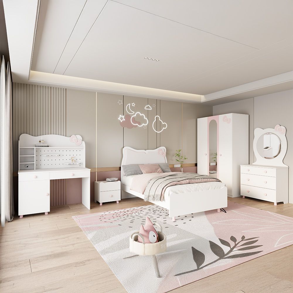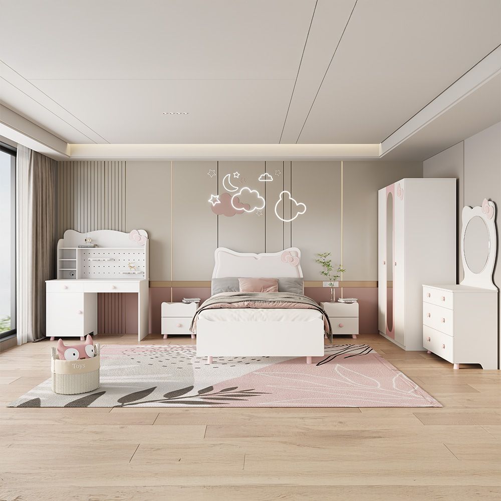 Kitty 2Drawers Nightstand-White+Pink