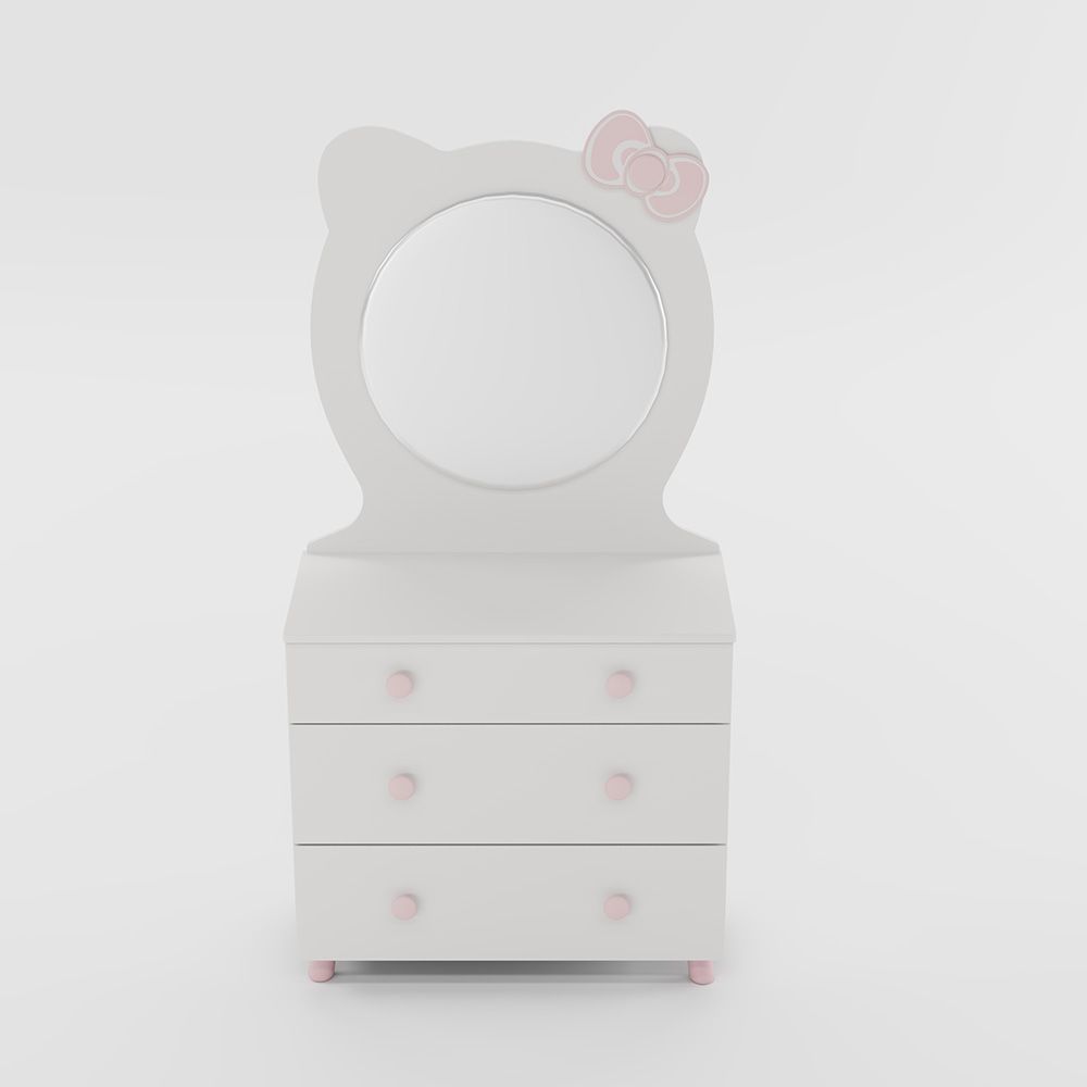 Kitty 3Drawers Dresser W/Mirror-White+Pink