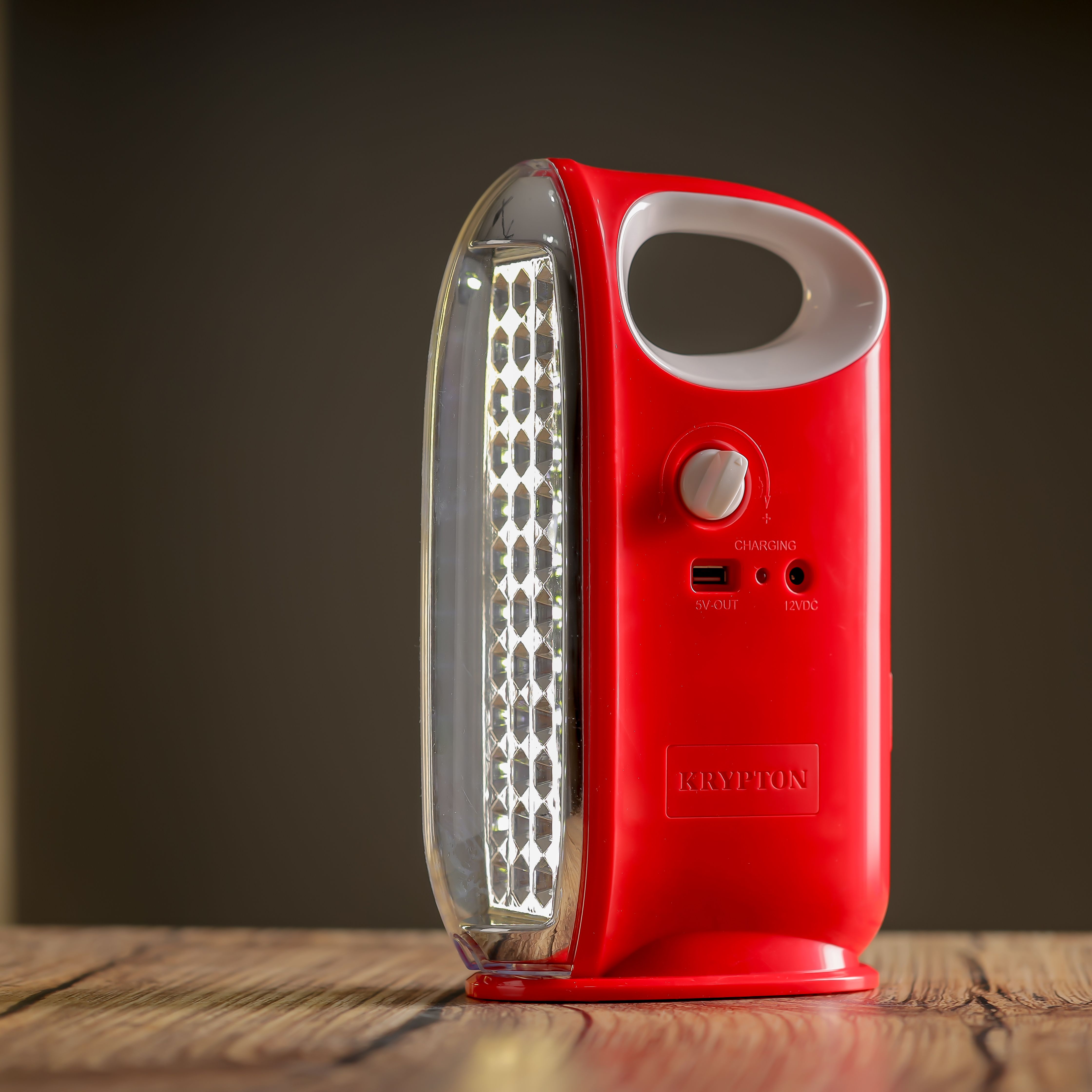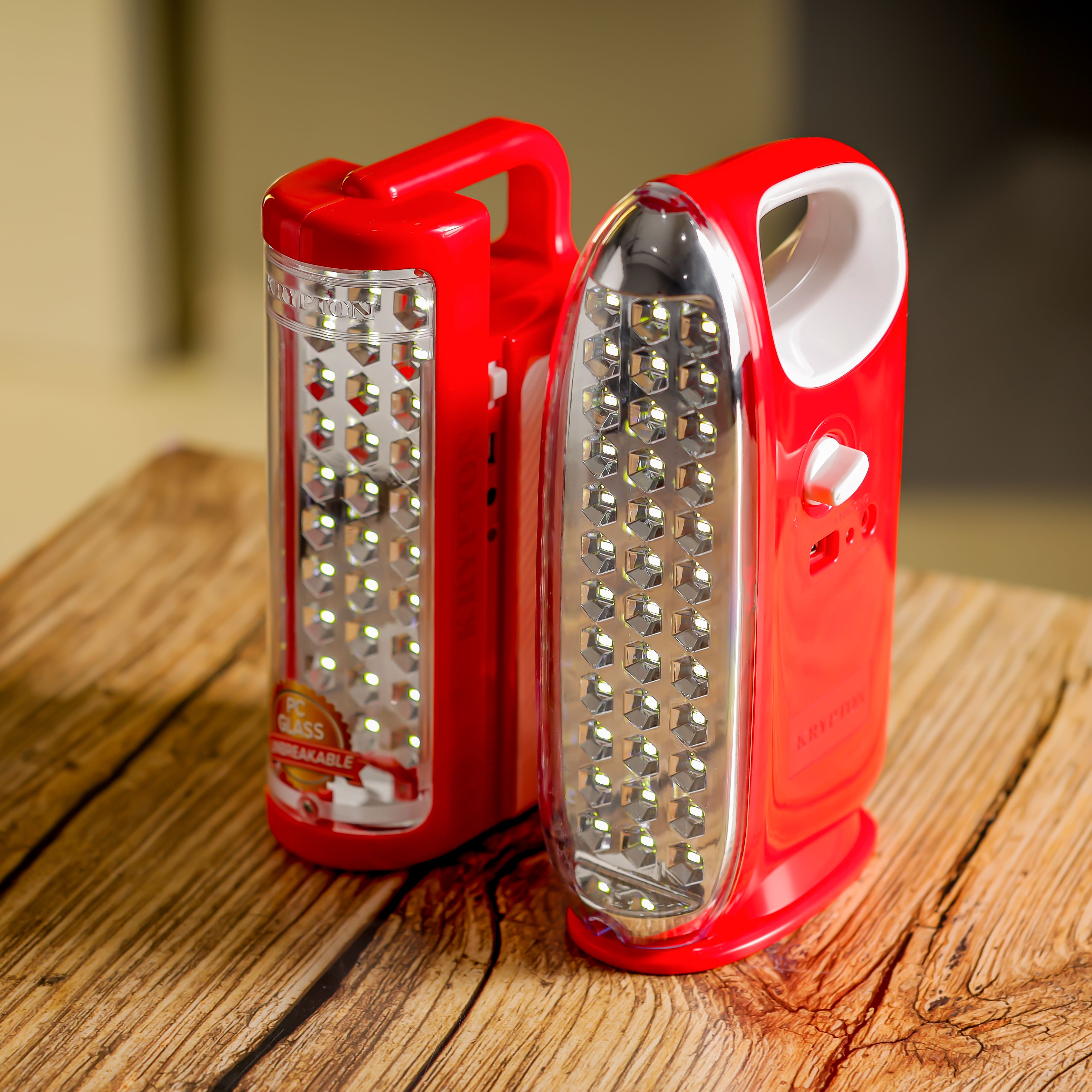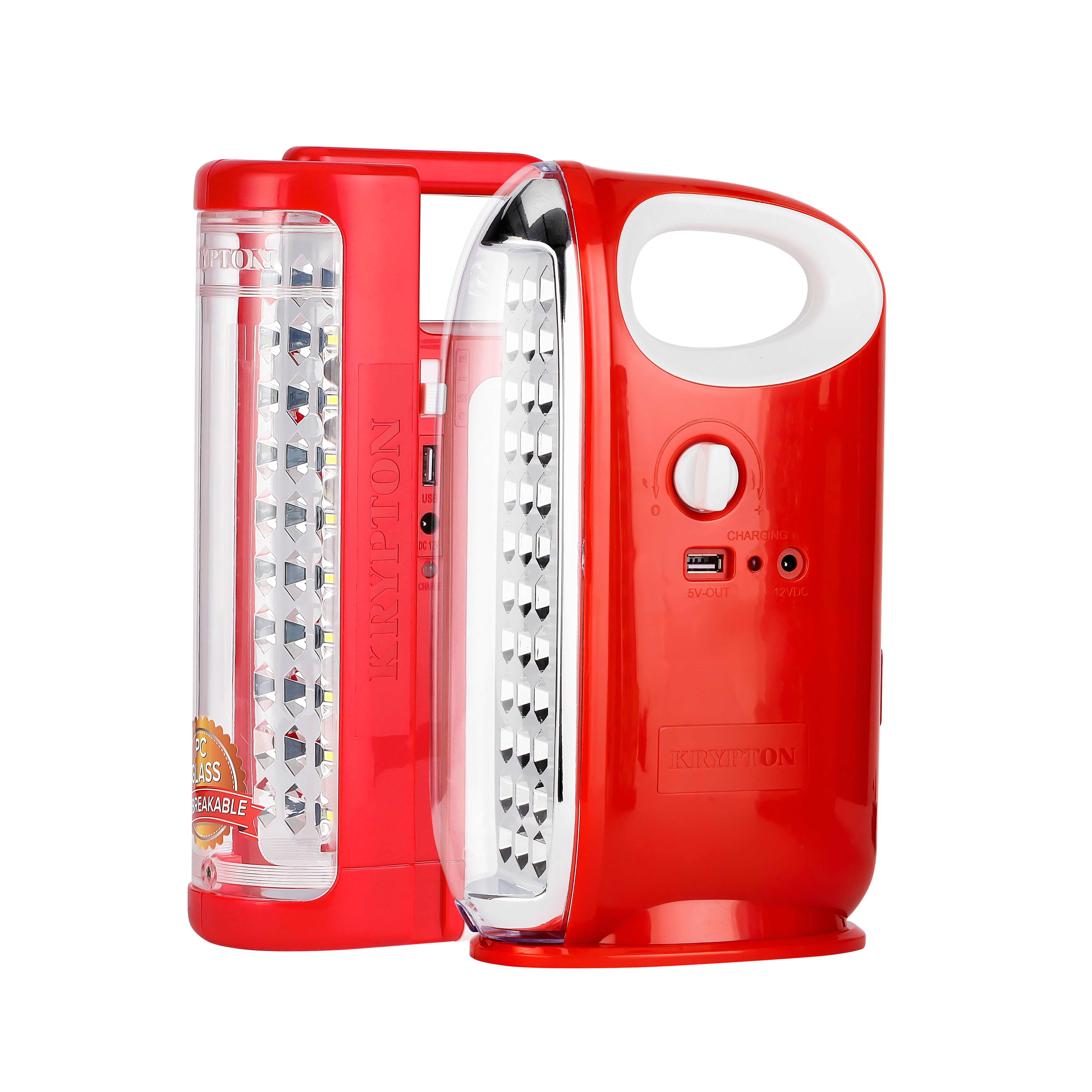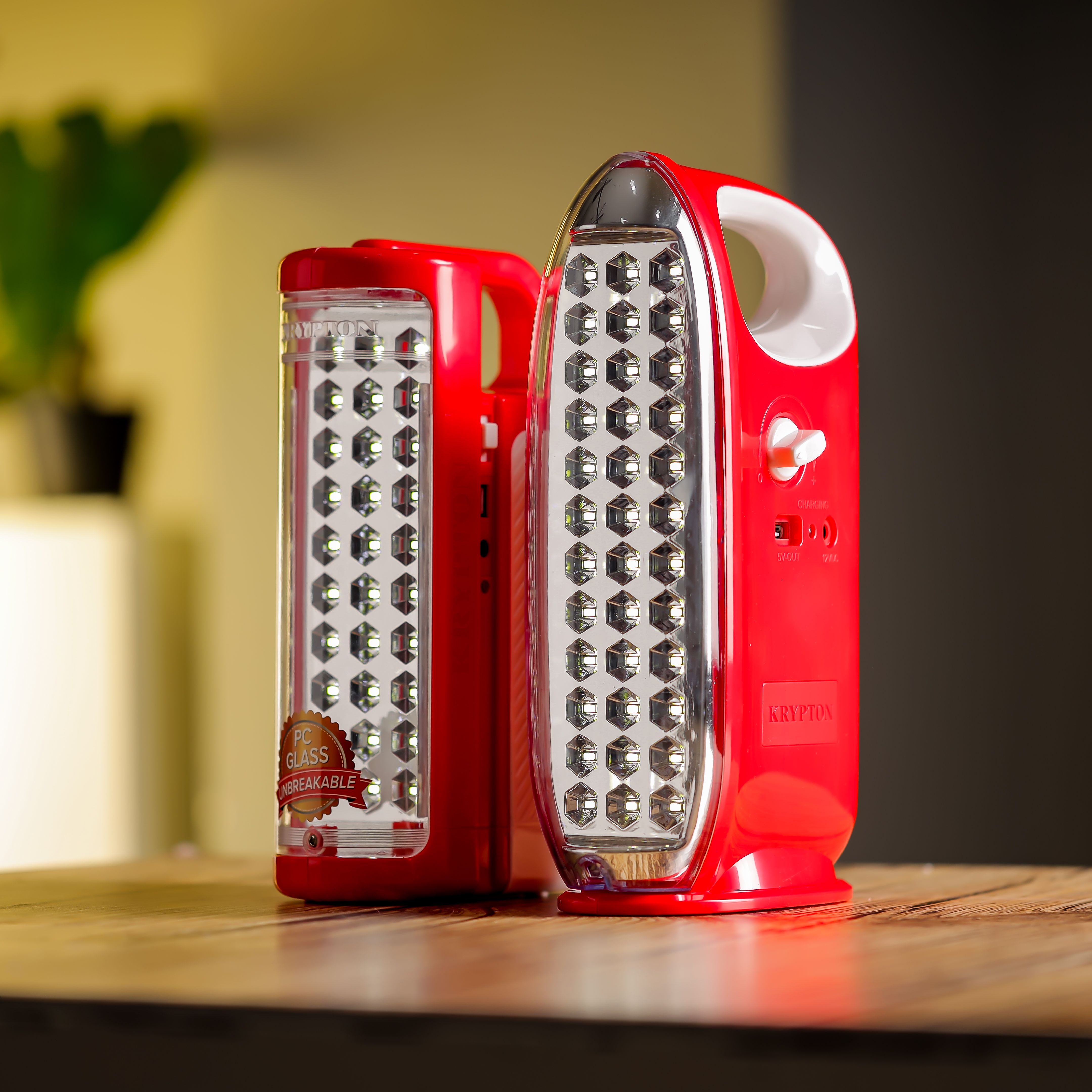 Krypton Rechargeable Emergency Lantern- KNE5179| Pack of 2, Energy Efficient Design, Extended Battery Life and 60 Hours Working| Compact, Portable and Light-Weight Design| Equipped with Lead-Acid Battery and Unbreakable PC Cover| Perfect for Indoor and Outdoor Use| Red