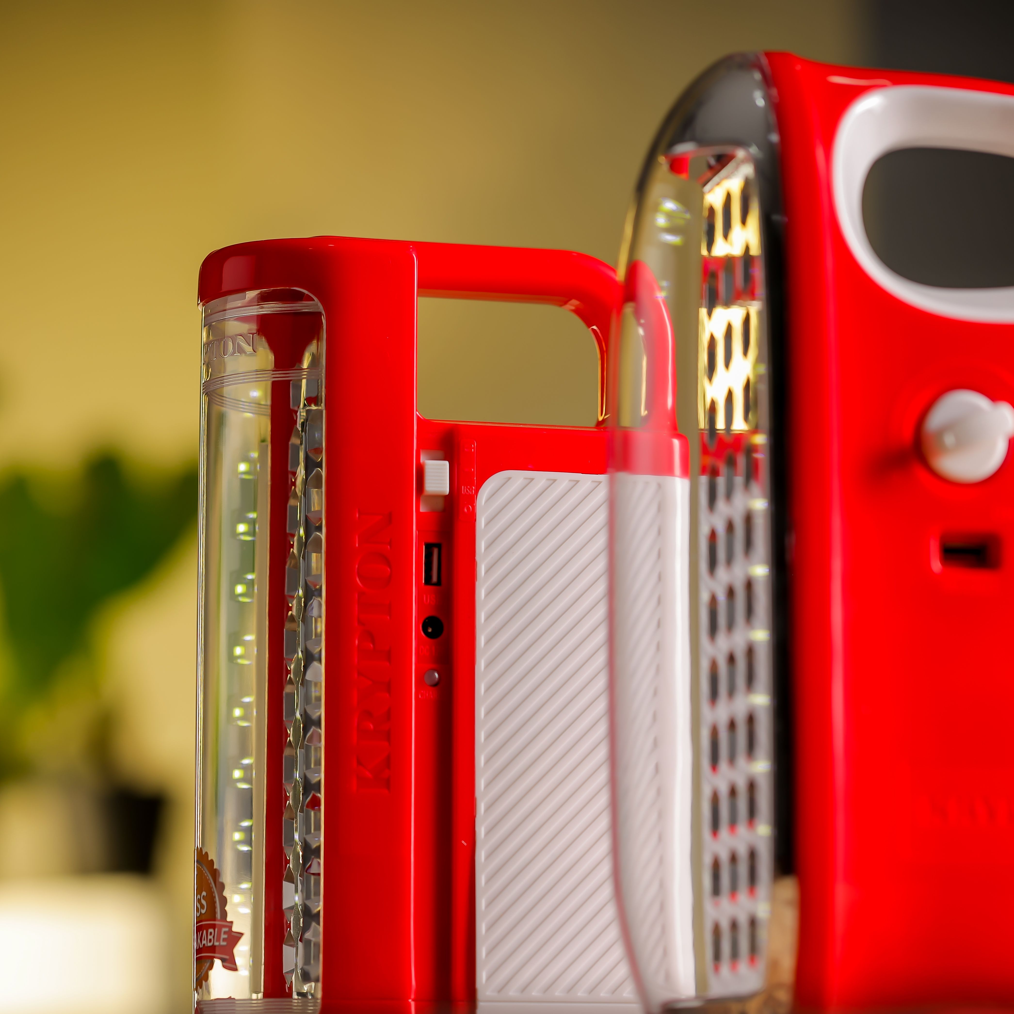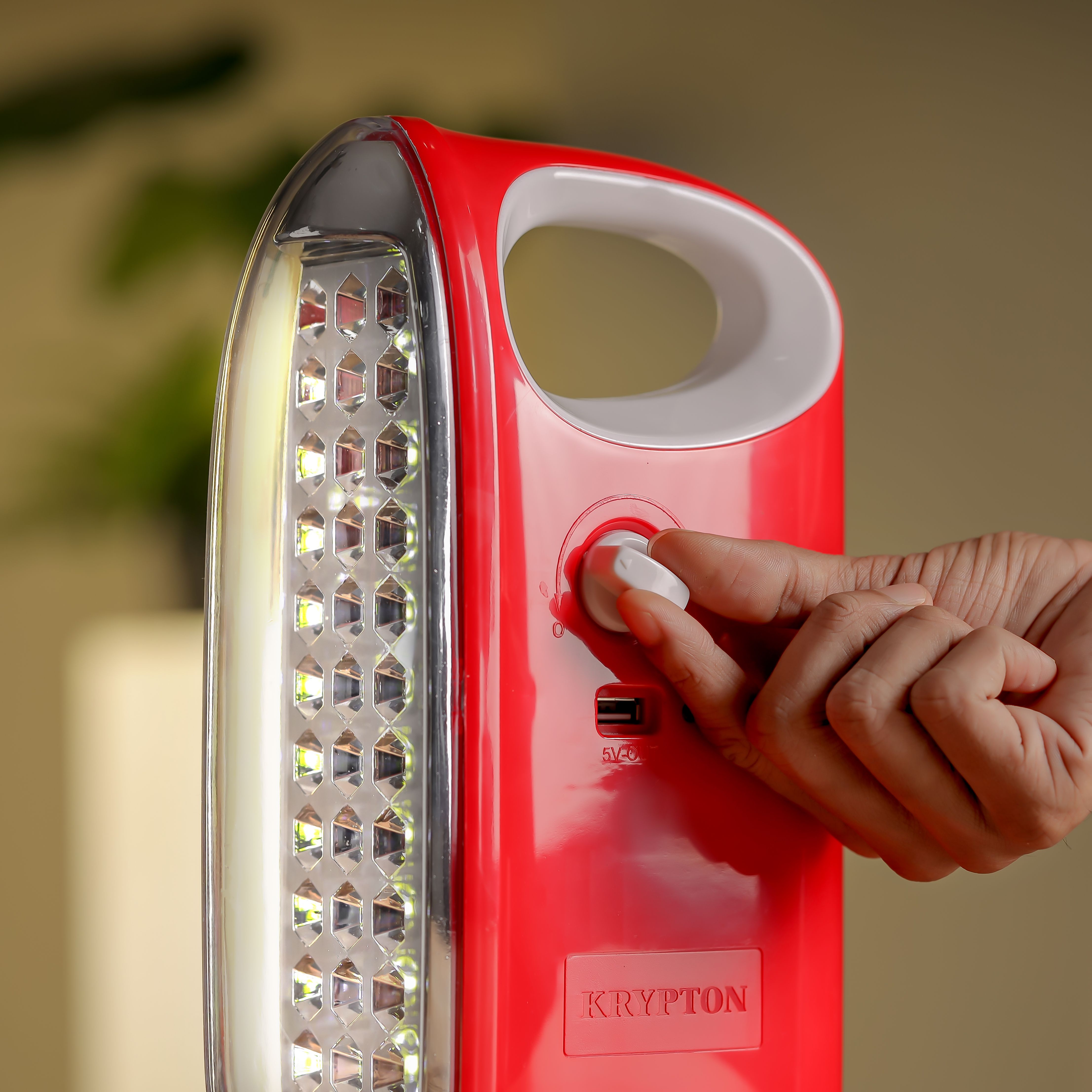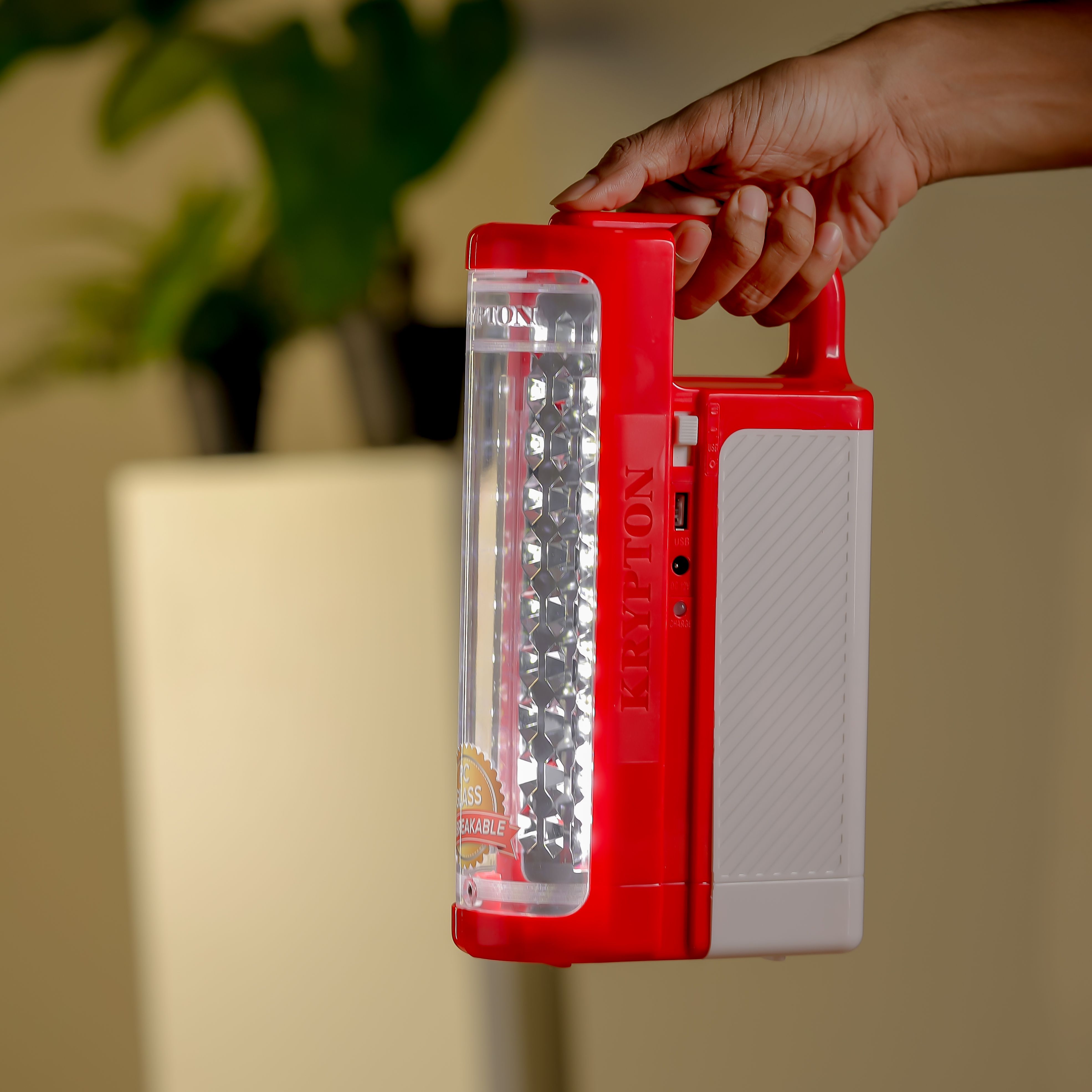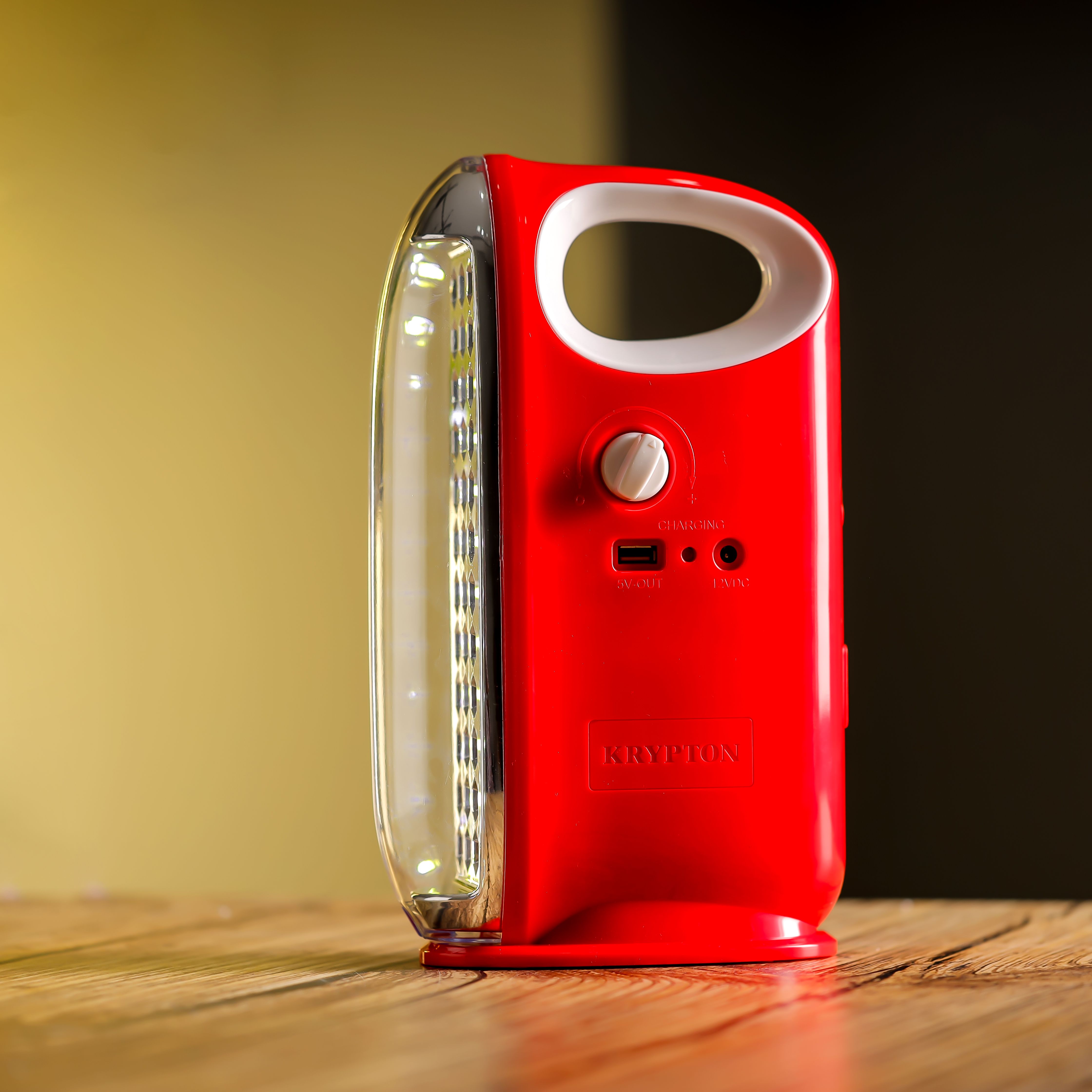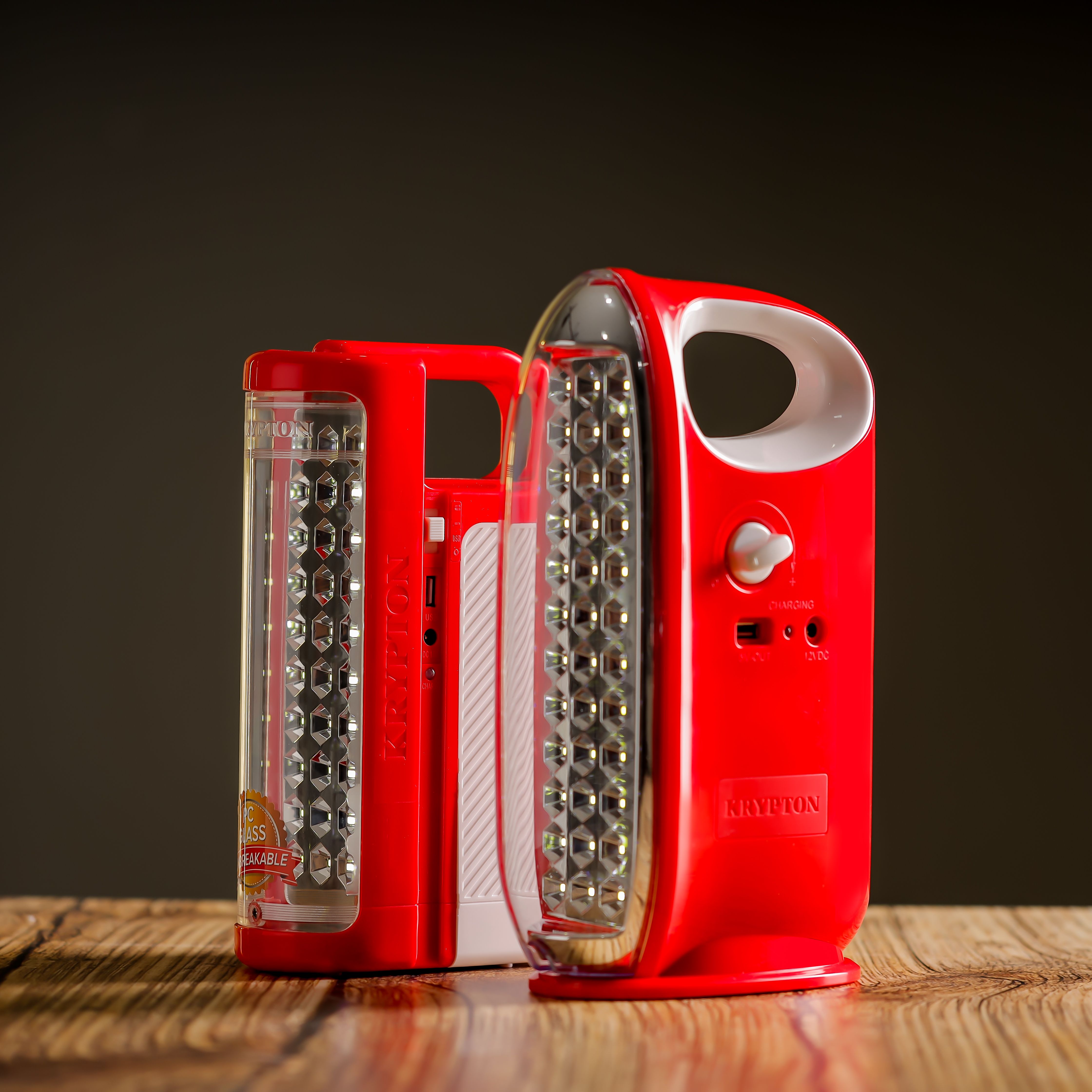 Krypton Rechargeable Emergency Lantern- KNE5179| Pack of 2, Energy Efficient Design, Extended Battery Life and 60 Hours Working| Compact, Portable and Light-Weight Design| Equipped with Lead-Acid Battery and Unbreakable PC Cover| Perfect for Indoor and Outdoor Use| Red