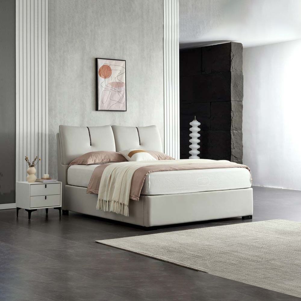 Elevate your bedroom with the KUSTOMDECO Kelly Classic Hydraulic Storage Leather Bed, a king-size 180 x 200 cm luxury bed frame upholstered in premium beige leather. Designed for both elegance and practicality, this bed features a hydraulic lift storage system, allowing you to keep linens, pillows, and seasonal essentials neatly tucked away beneath the mattress.