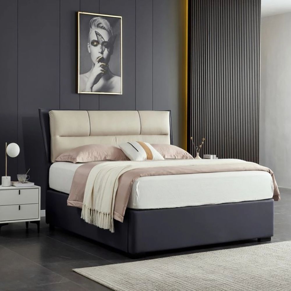 Add mid-century modern elegance to your bedroom with the KUSTOMDECO Sausalito Hydraulic Storage Leather Bed, a king-size 180 x 200 cm platform bed crafted from premium-grade wood and upholstered in soft grey technical suede fabric. This hand-crafted frame brings both refined luxury and everyday functionality to your space.