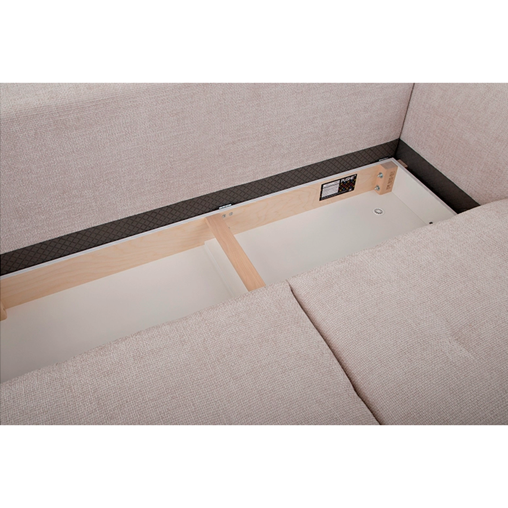 Storage boxes size: main module — 151 x 71 x 12.5 cm; chaise — 150 x 68.5 x 11.5 cm.