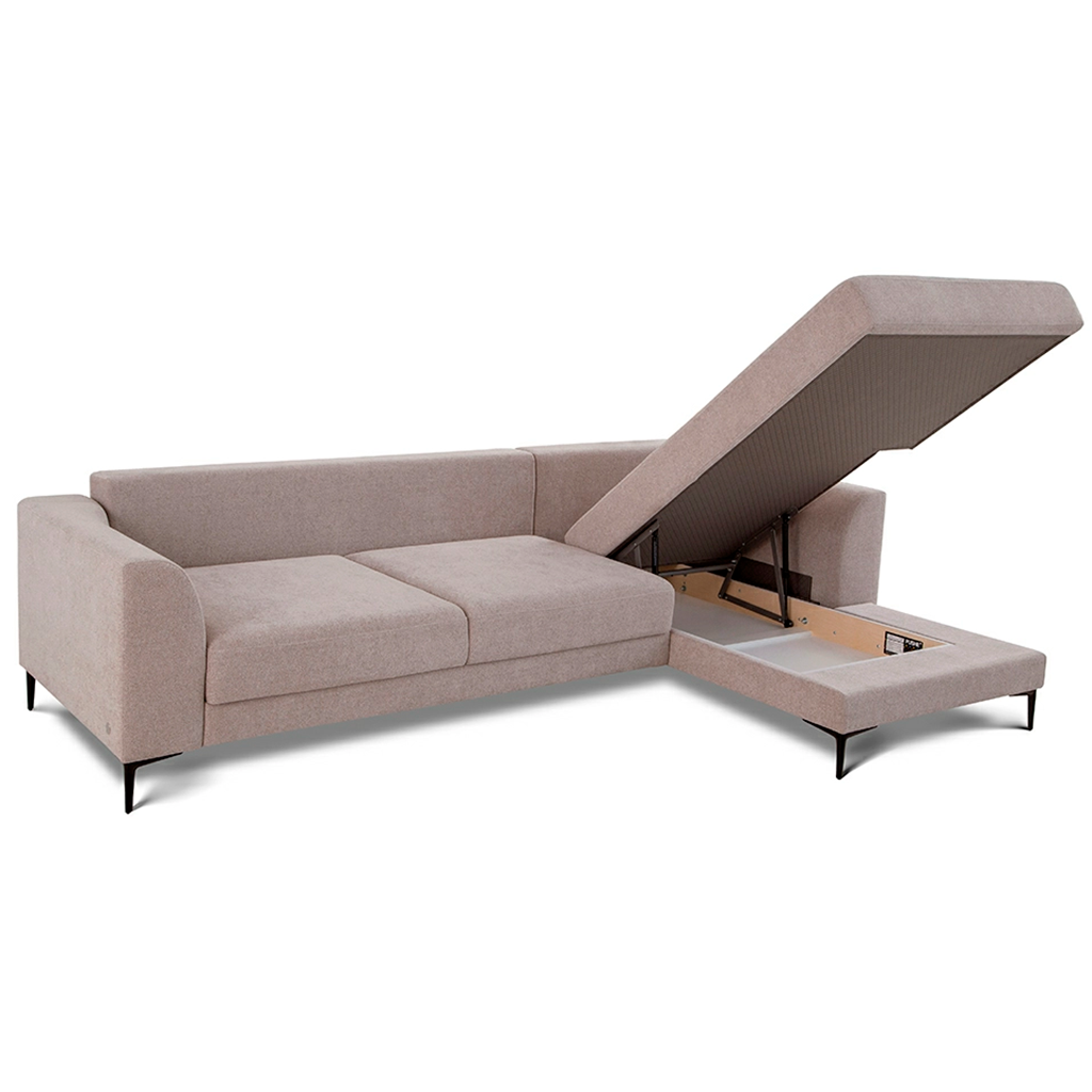 Storage boxes size: main module — 151 x 71 x 12.5 cm; chaise — 150 x 68.5 x 11.5 cm.