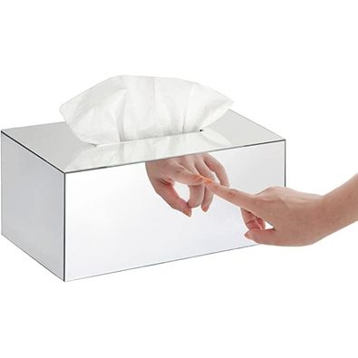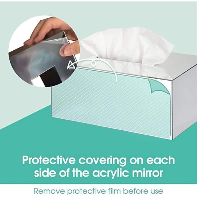LAMSIT IBDAA - Acrylic Tissue Box Holder Case Storage Case Tissue Holder Napkin Holder Organizer (Rectangle (25x13x9 cm), Silver Mirror)