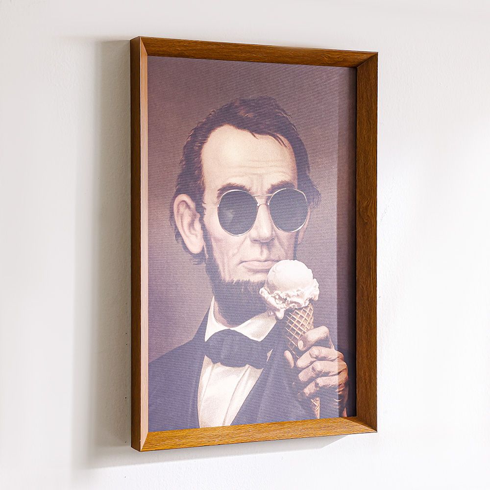 Latin Mr.Lincoln With Ice Cream Print Framed Canvas 40X60