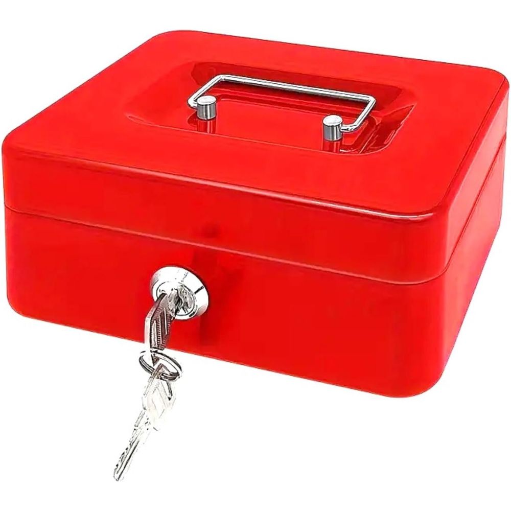 LAVISH Money Safe Cash Box | Storage Box | Metal Cash Box With 2 Pcs Key For Money Valuable Jewelry Receipts Collection And Many More (LARGE RED SIZE-200x160x90mm)