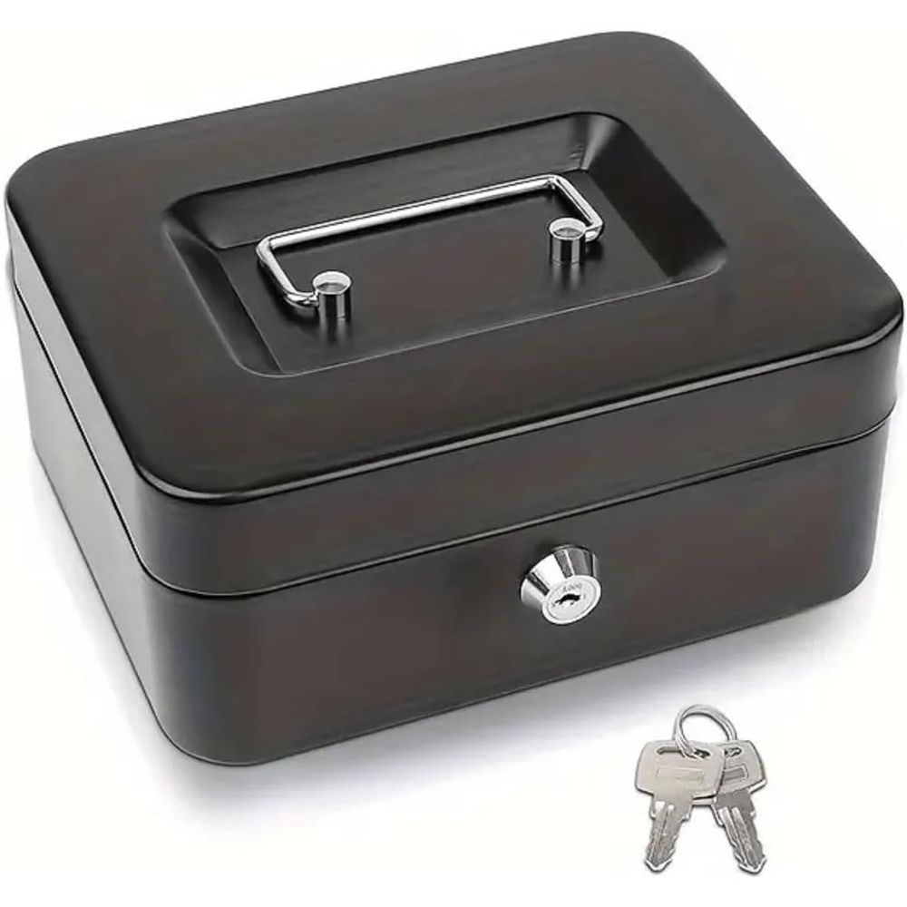 LAVISH Money Safe Cash Box | Storage Box | Metal Cash Box With 2 Pcs Key For Money Valuable Jewelry Receipts Collection And Many More (MEDIUM BLACK SIZE-150x120x80mm)