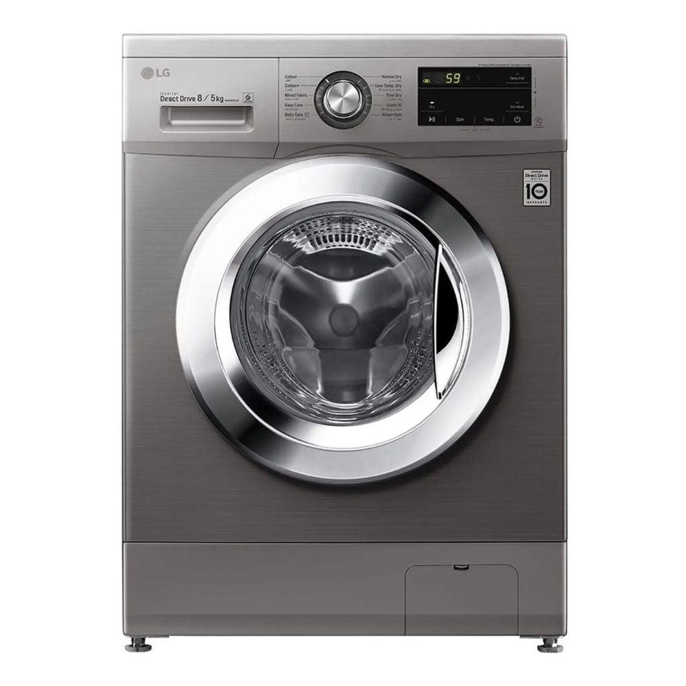 LG 8Kg Washer & 5Kg Dryer in Platinum Silver with Inverter Direct Drive, 6 Motion DD, and Smart Diagnosis — efficient, quiet, and space-saving laundry solution