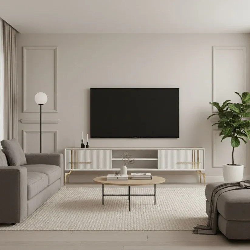 Graceful and timeless, this TV cabinet complements all types of interior design themes. The natural wood knots and grain of this media console add a natural charm and elegance.