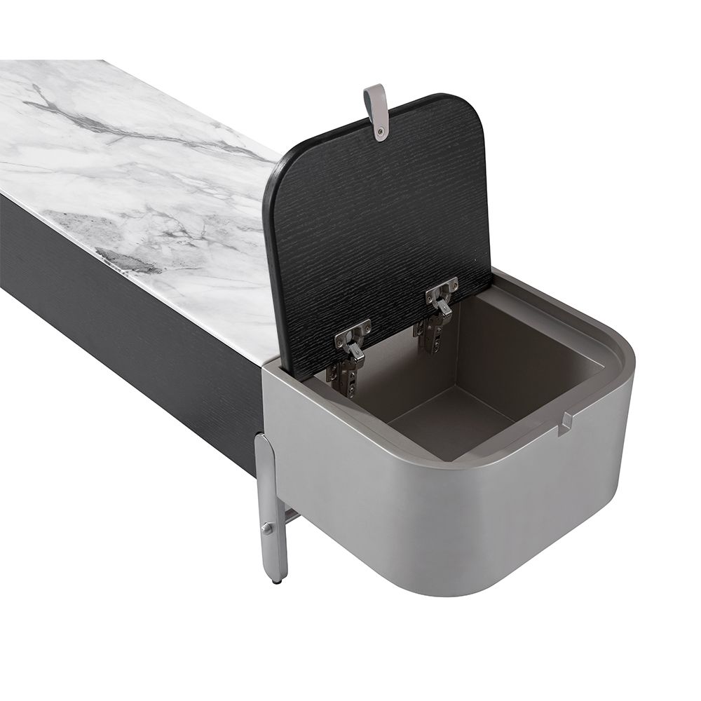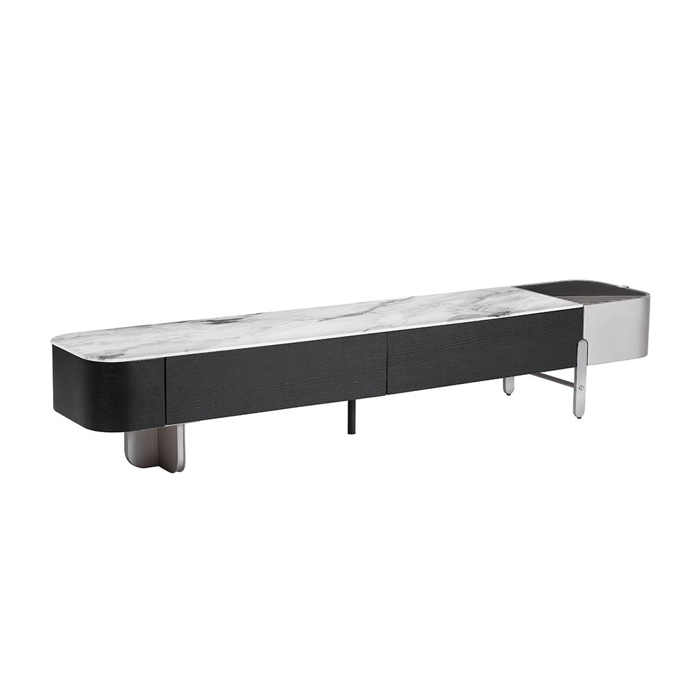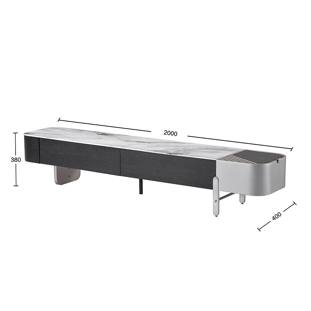 Linea Marble Top Tv Unit With 2 Push Open Drawers Upto 80 Inch - Grey/Black