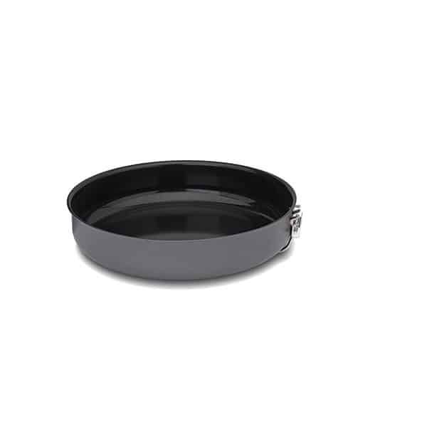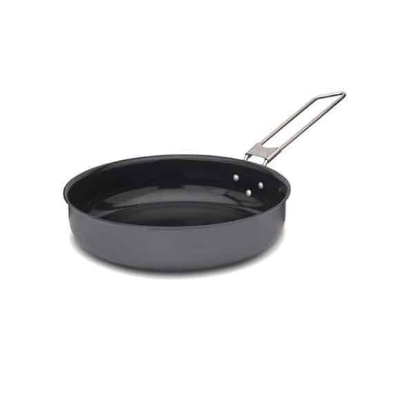 Packing up is a breeze with a collapsible handle that folds away under the pan