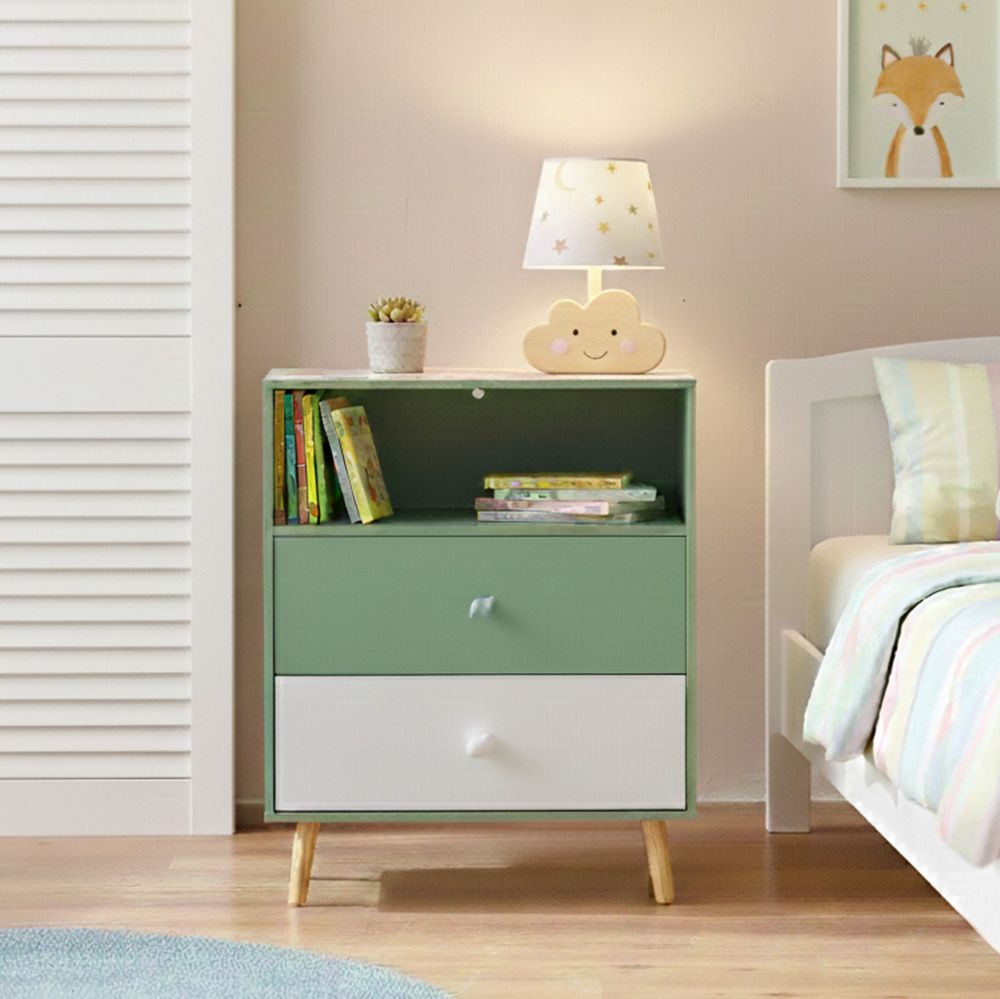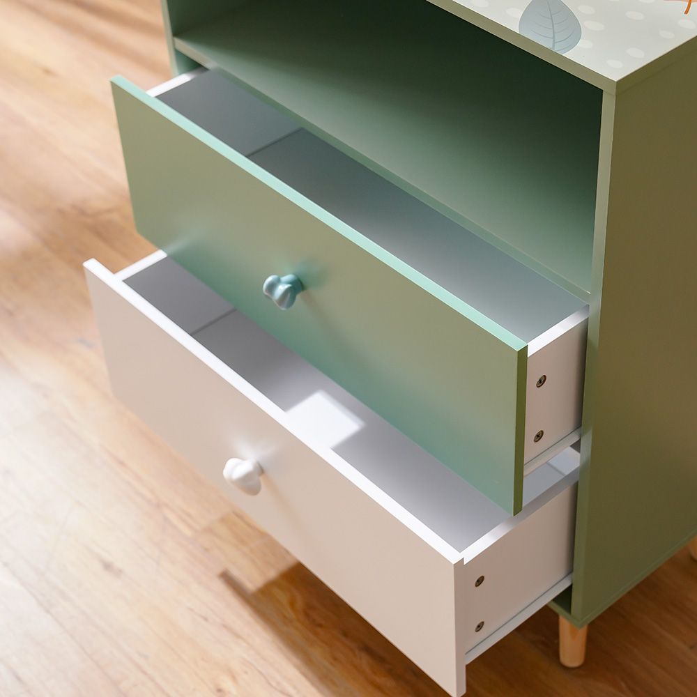 Little Bear 2Drawer & 1 Open Shelf Kids Chest Of Drawers-Green & White