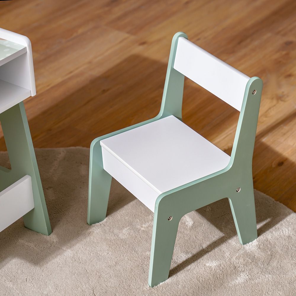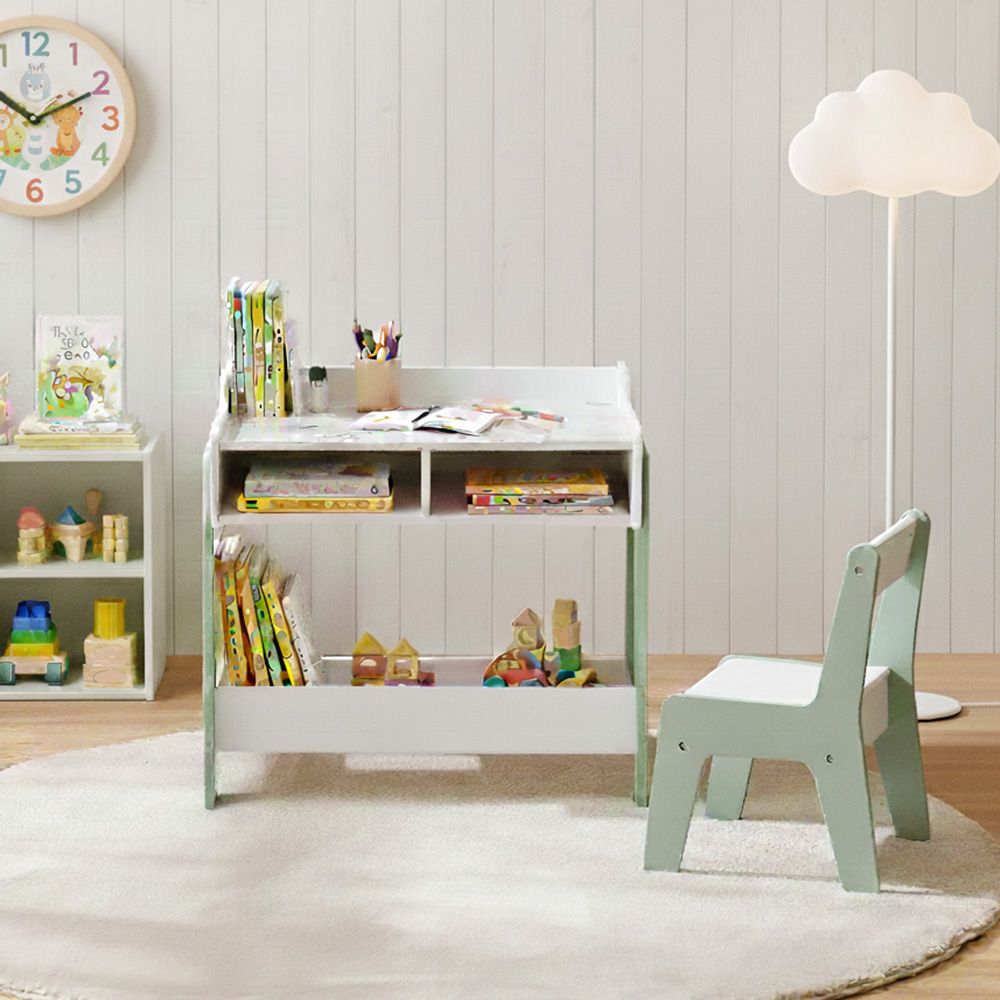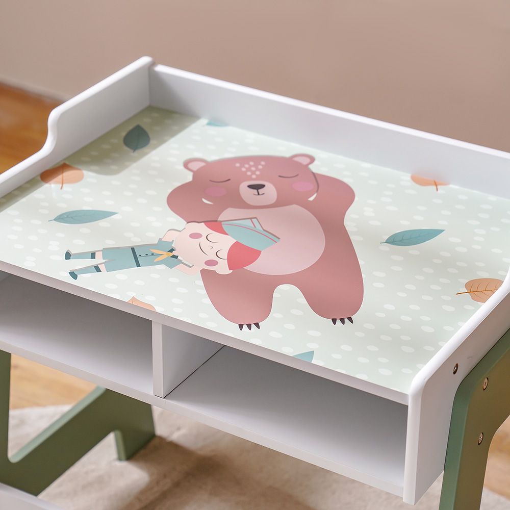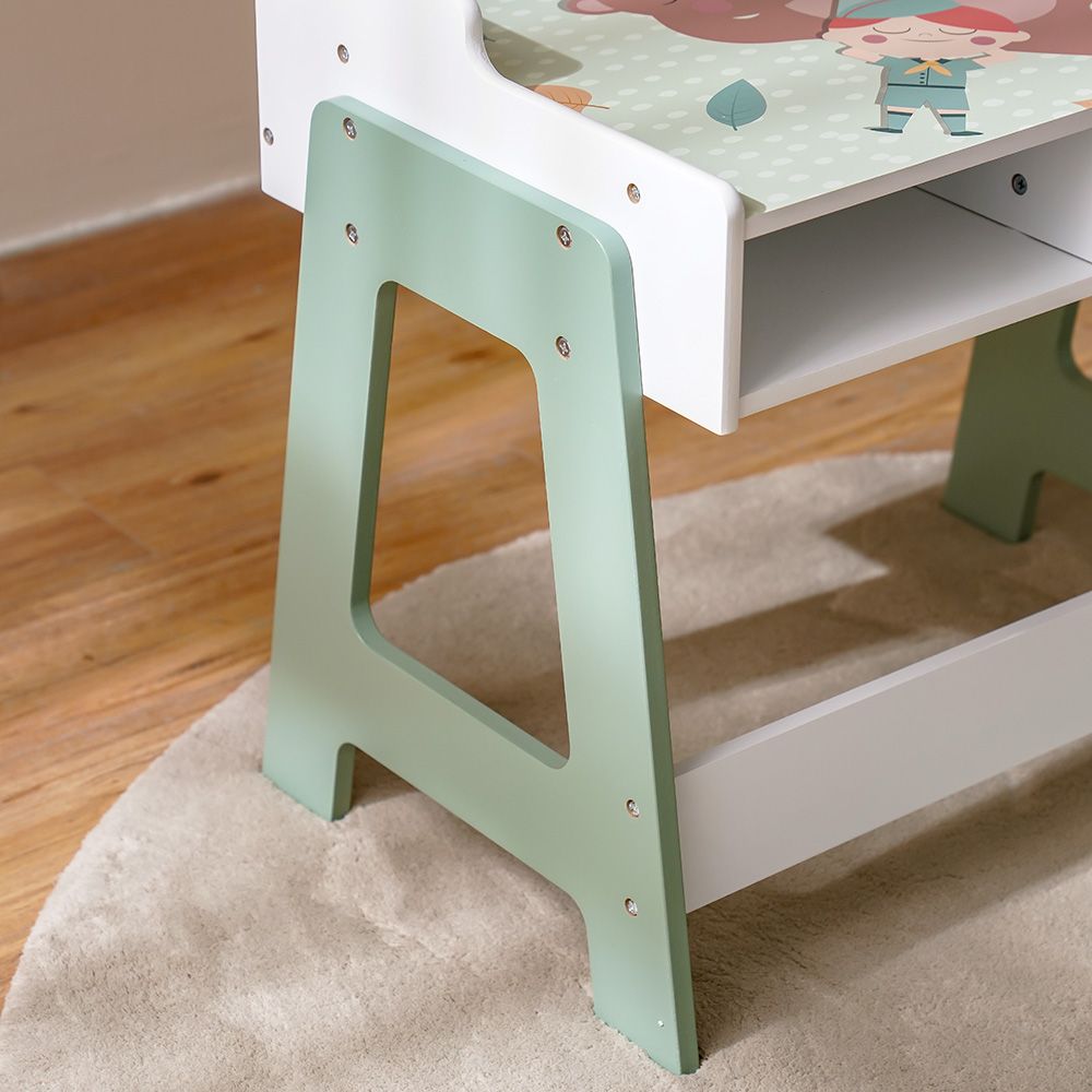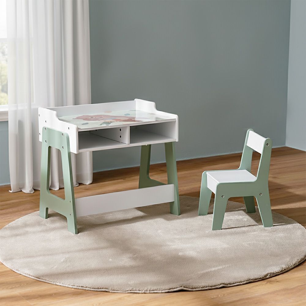 Little Bear Kids Table With Storage and 1 Chair Set-Green & White