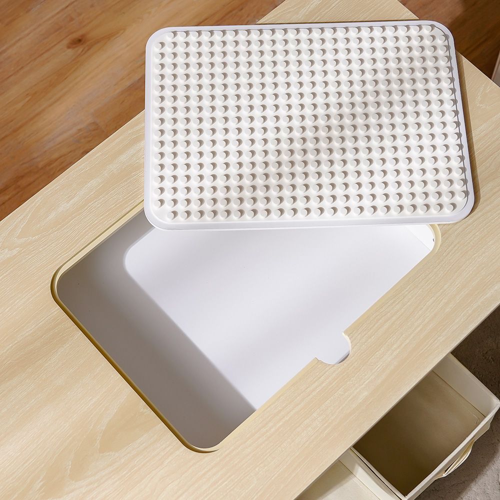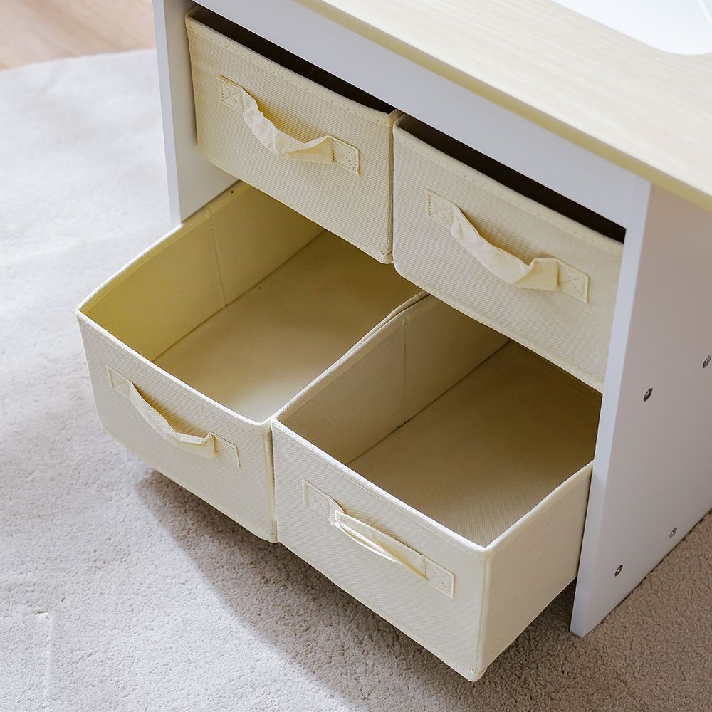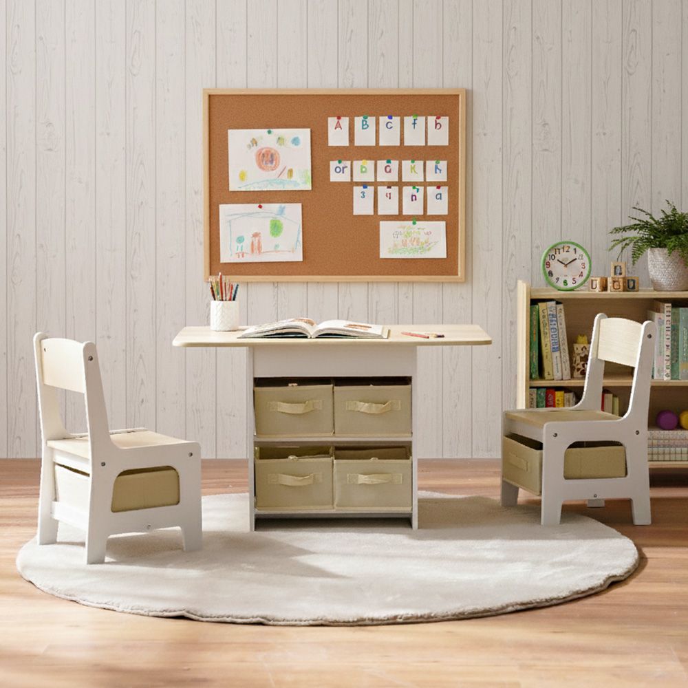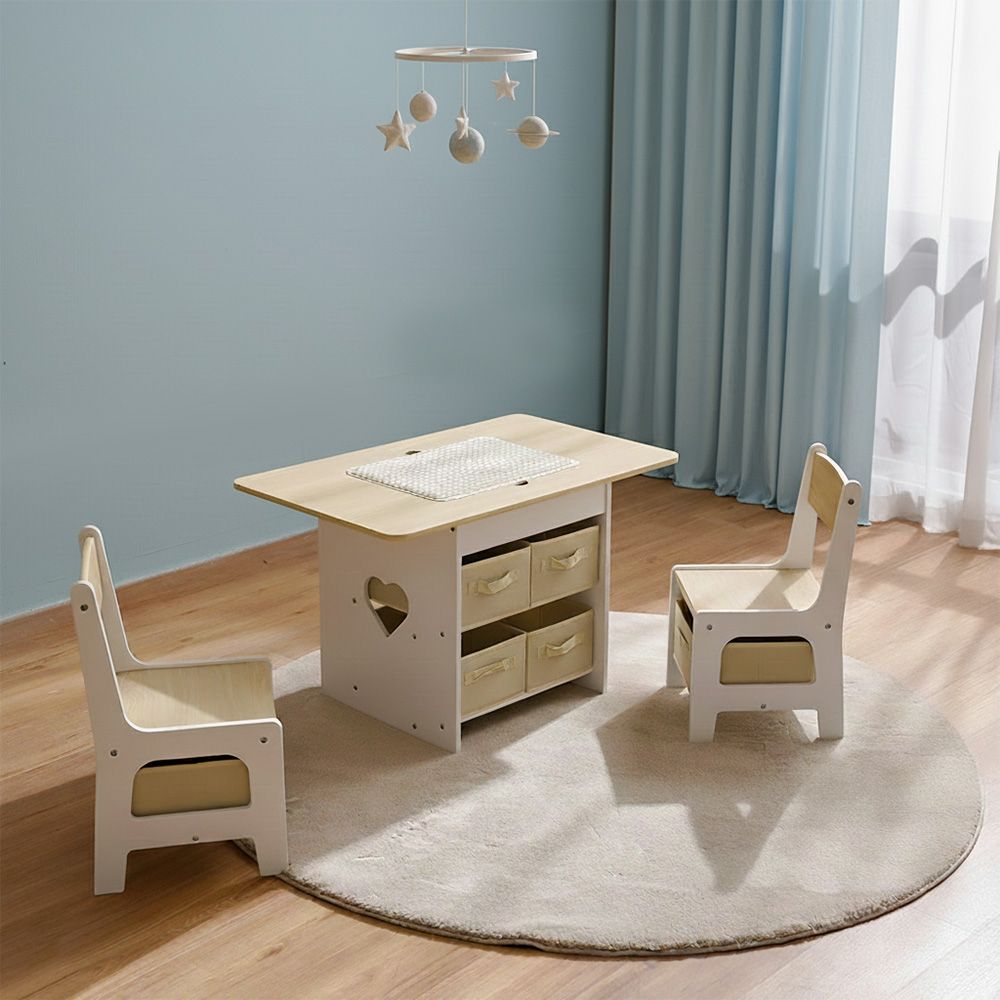 Little Learner's 1+2 Kids Table & Chair Set With Storage+Lego Top Table & 6 Fabric Storage Organiser-White & Oak