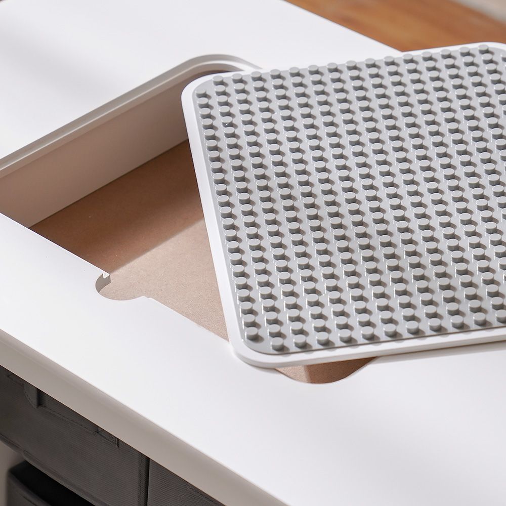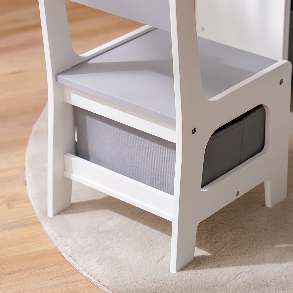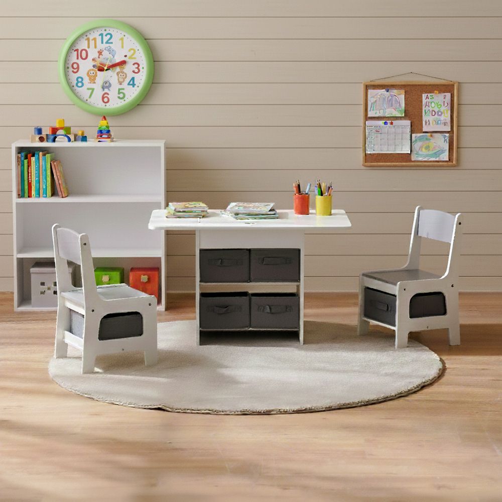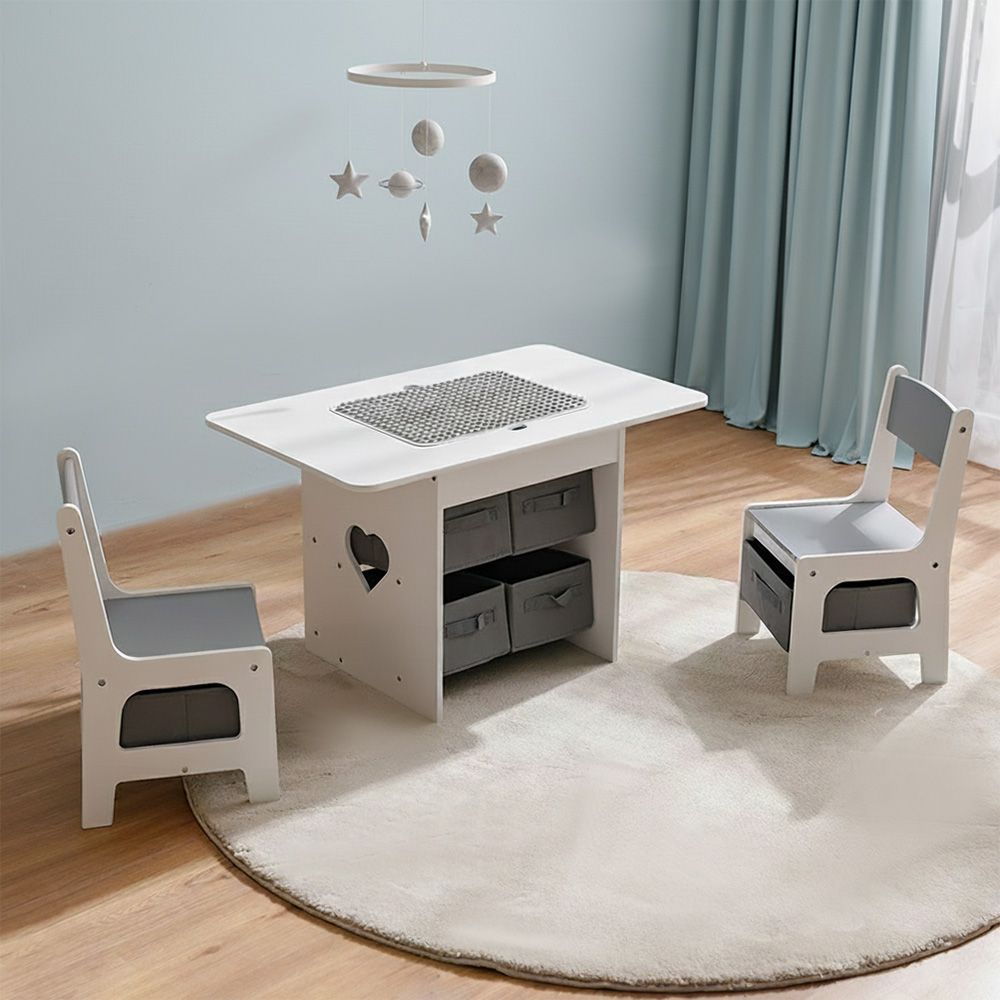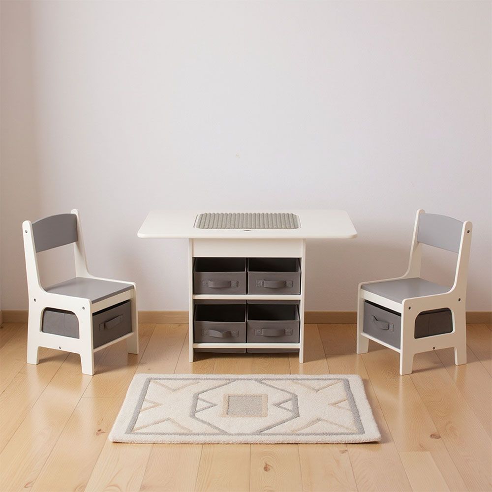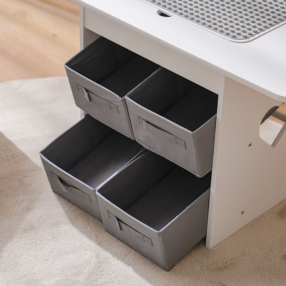 Little Learner's 1+2 Kids Table With Storage/ Lego Top/ 6 Fabric Storage Organiser & Chair Set-White & Grey