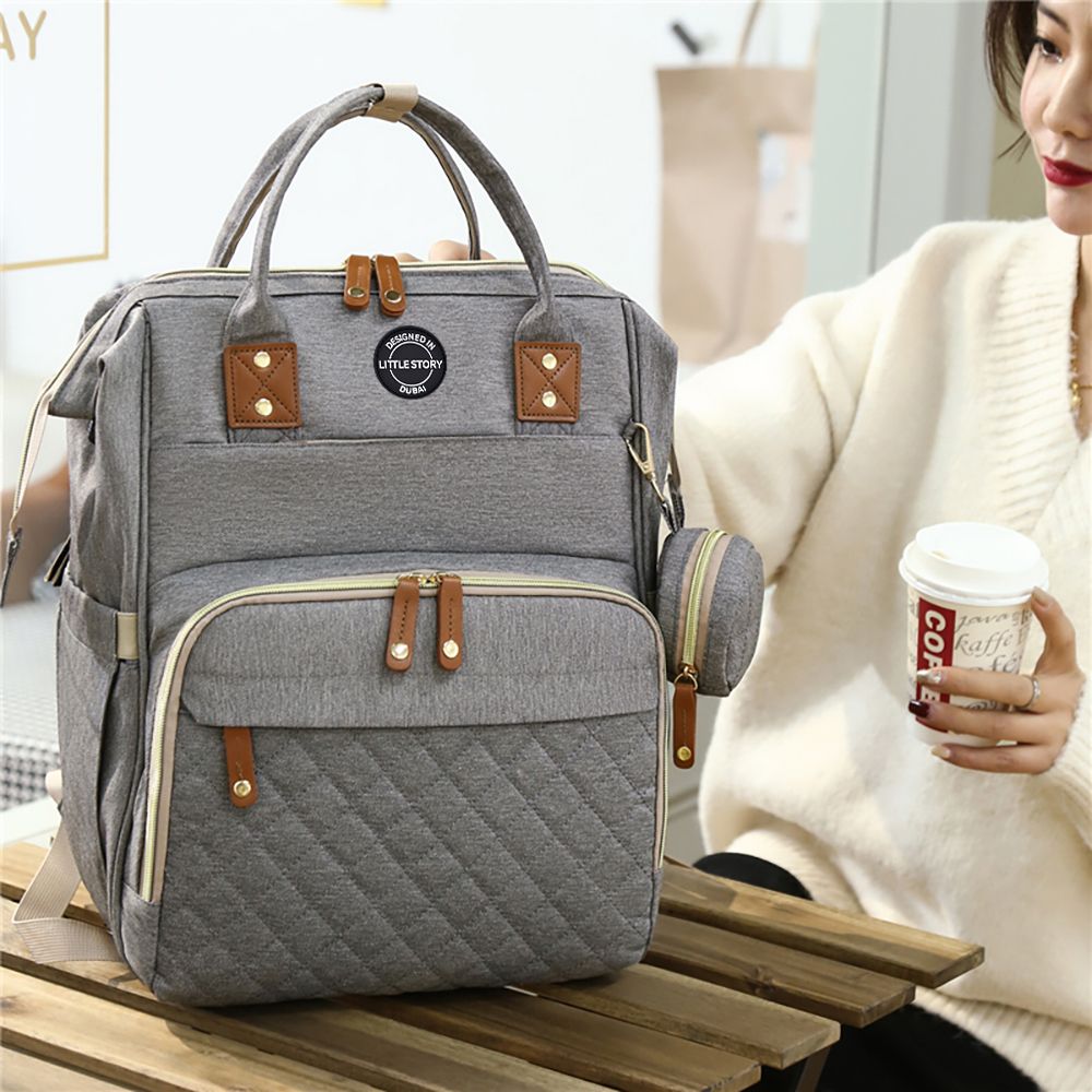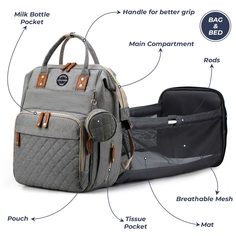 Little Story - Diaper Bag wt portable bassinet bed & pacifier pouch - Grey
