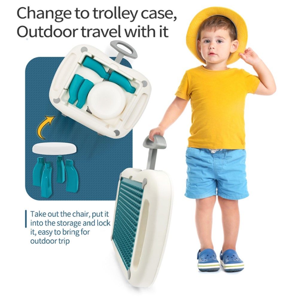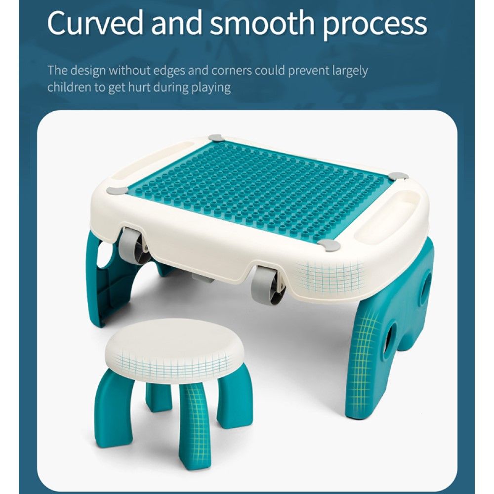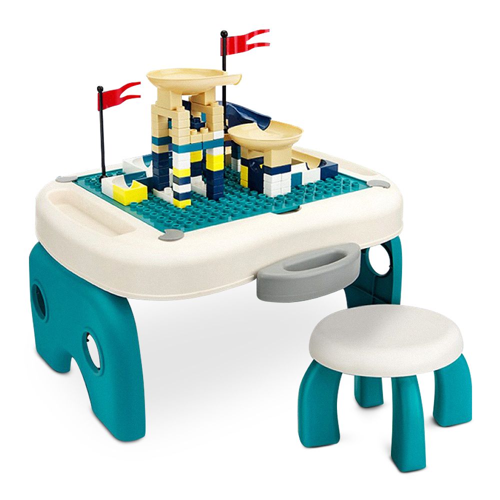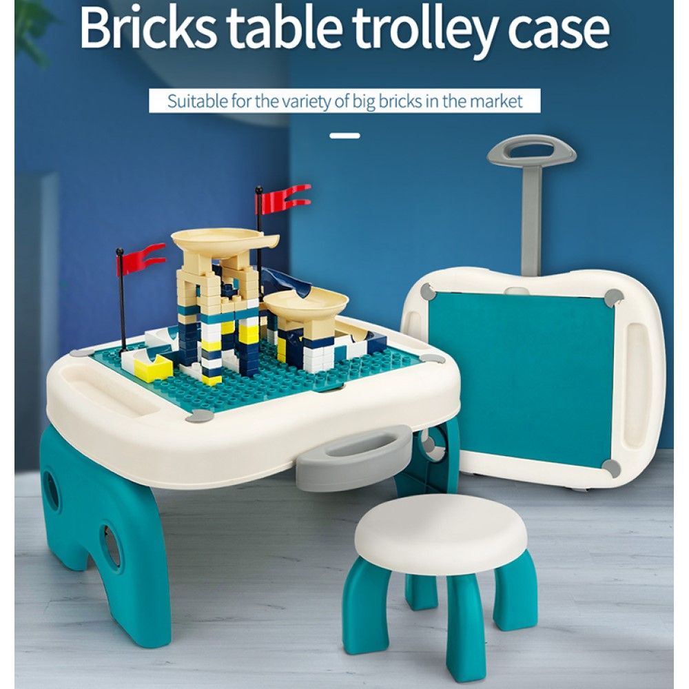 Little Story Foldable Portable Block Table W/T 50 Blocks & Stool