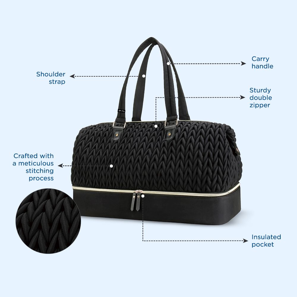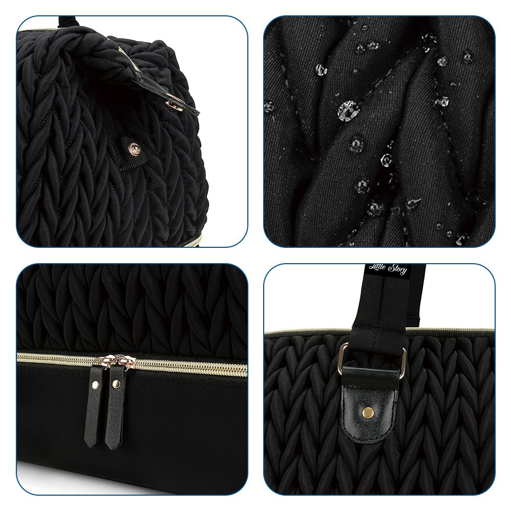 Little Story Luxe Knit Diaper Bag with Clutch - Black