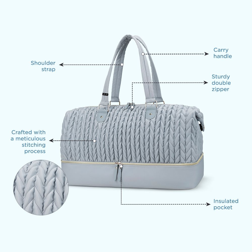Little Story Luxe Knit Diaper Bag with Clutch is designed for parents who want maximum space without compromising on style. With an impressive 35.6L capacity along with Insulated Bottom Compartment, this roomy bag makes it effortless to pack all your baby’s essentials – and still have space for your own must-haves. Crafted from durable, water-repellent polyester with premium knit stitching, it’s lightweight yet tough enough to keep up with everyday adventures.