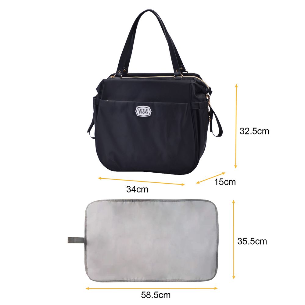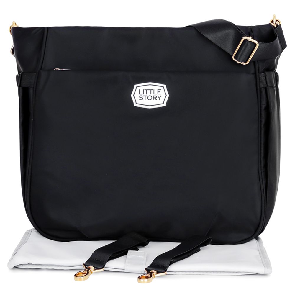 Little Story Mamma Nappy Bag Wt Changing Pad And Hooks-Black