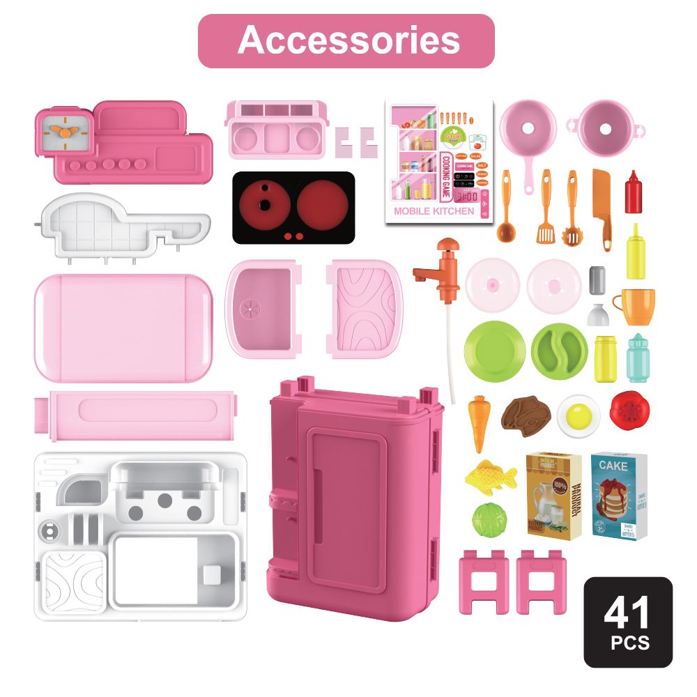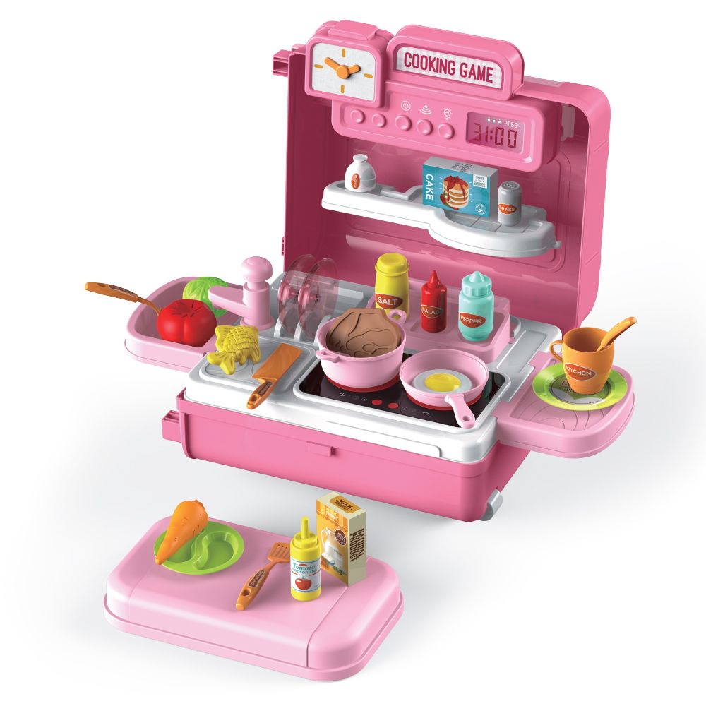 Little Story Role Play Chef / Kitchen / Restaurant Toy Set Luggage Case (41 Pcs) Inbuilt Light & Sound - Pink, 4 - In - 1 Mode