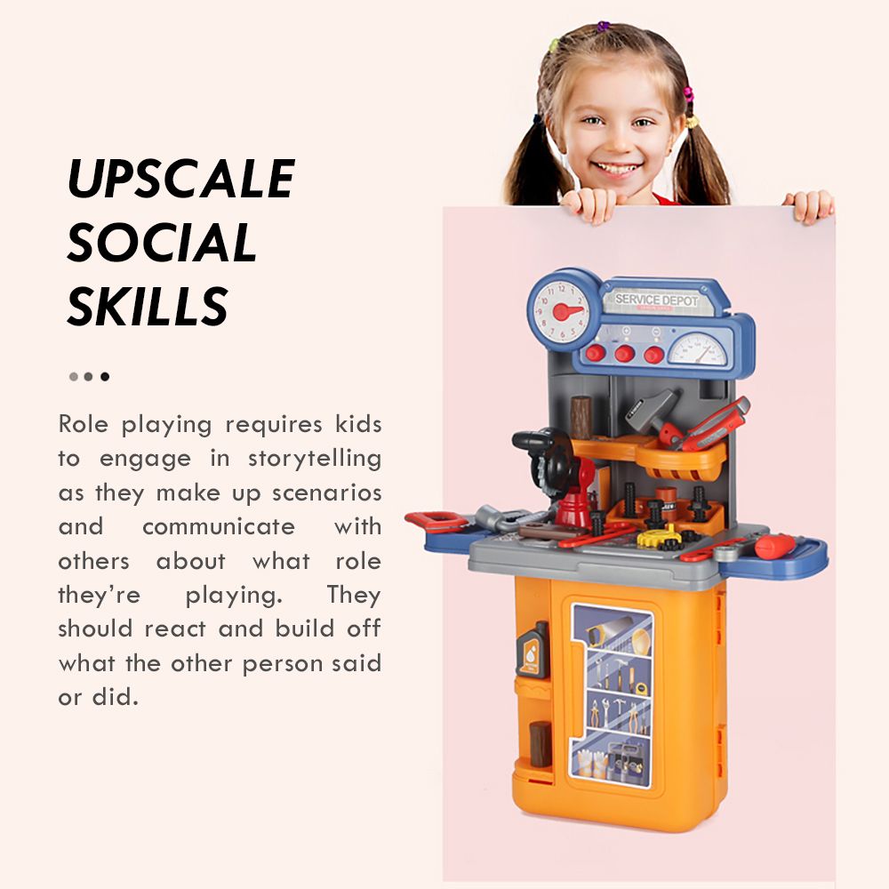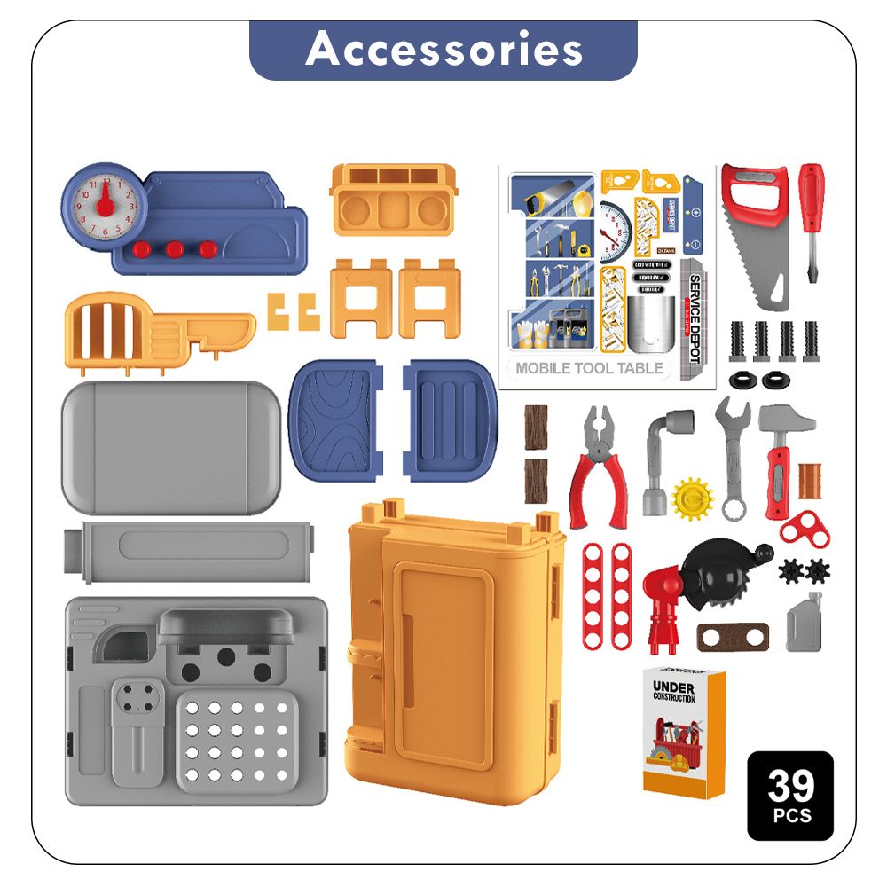 Little Story Role Play Mechanic / Tools Table Toy Set Luggage Case (39 Pcs) - Yellow, 4 - In - 1 Mode