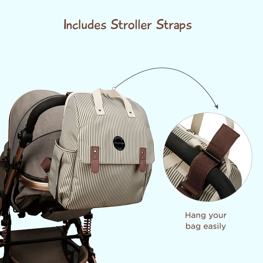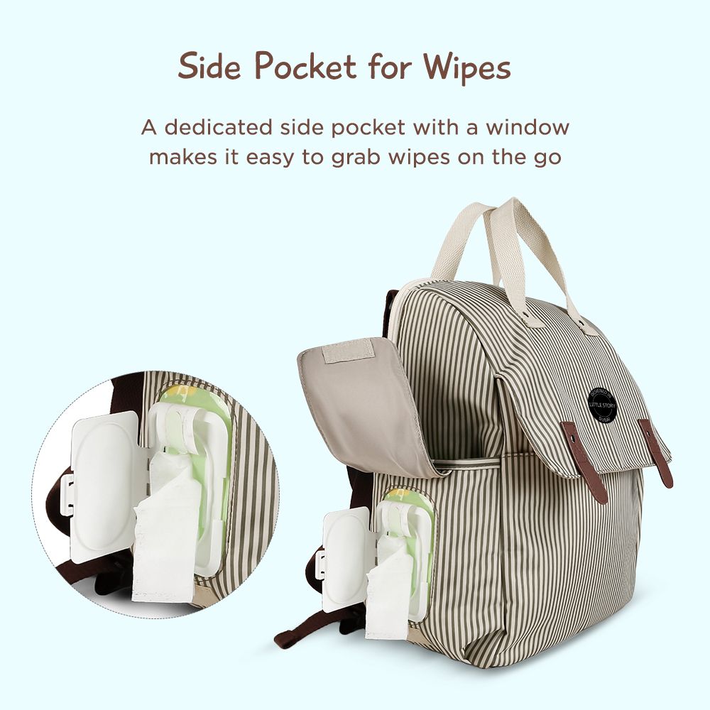 Little Story set of 3 Diaper Backpack with Changing Mat and Bottle Bag - Beige