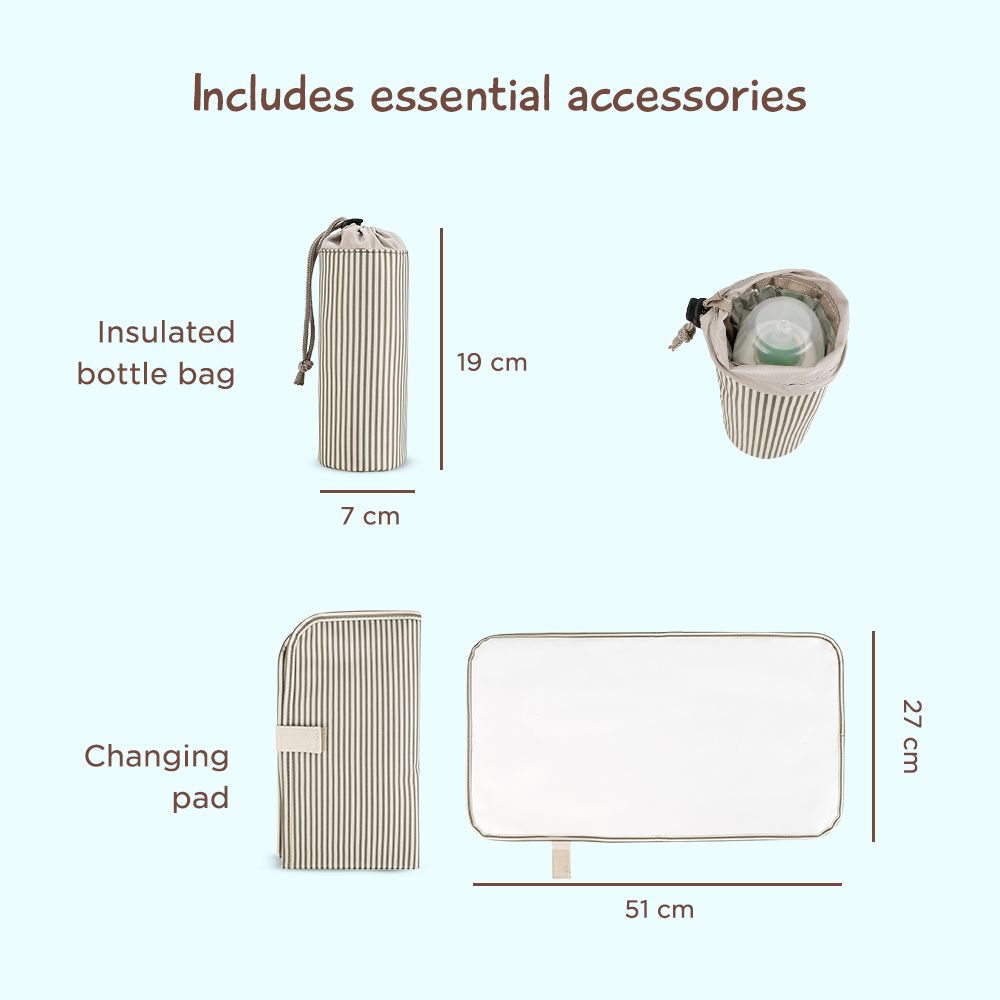 Extra Convenience – Includes matching insulated Bottle Bag and changing mat for easy feeding and diaper changes on the go.