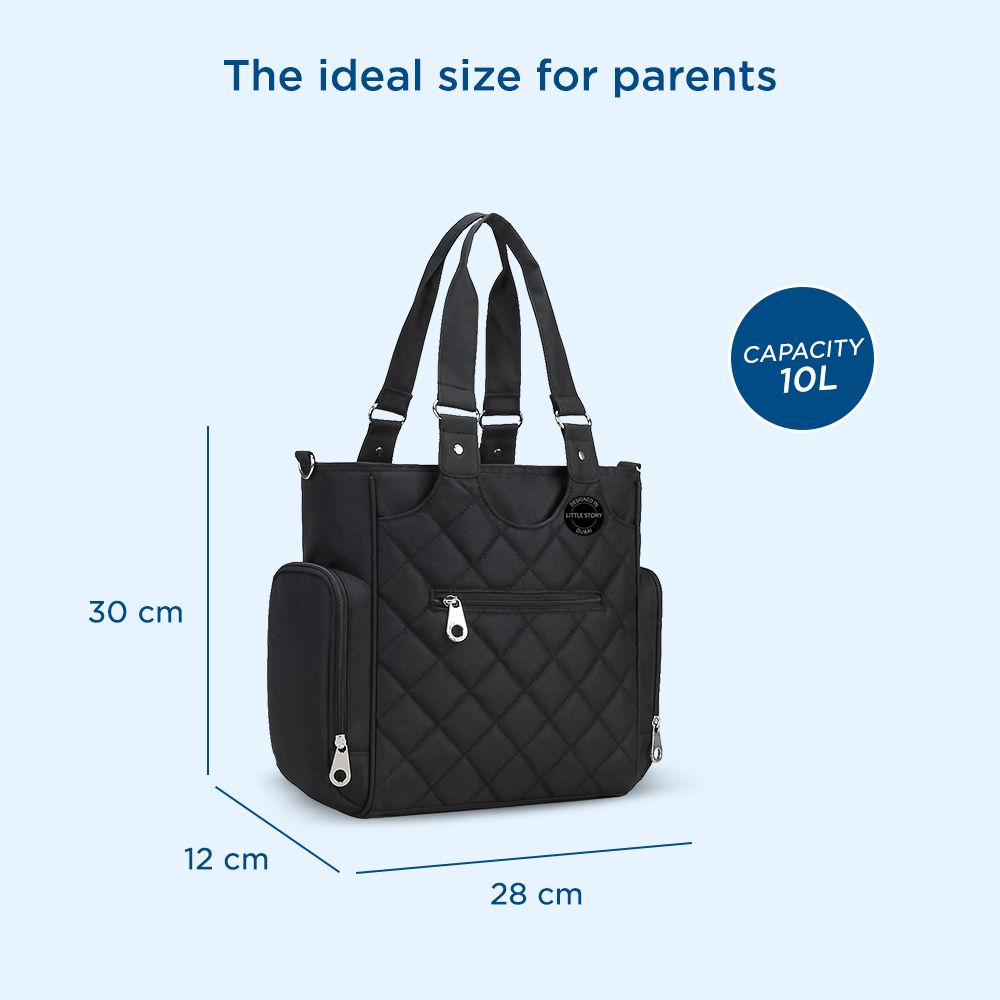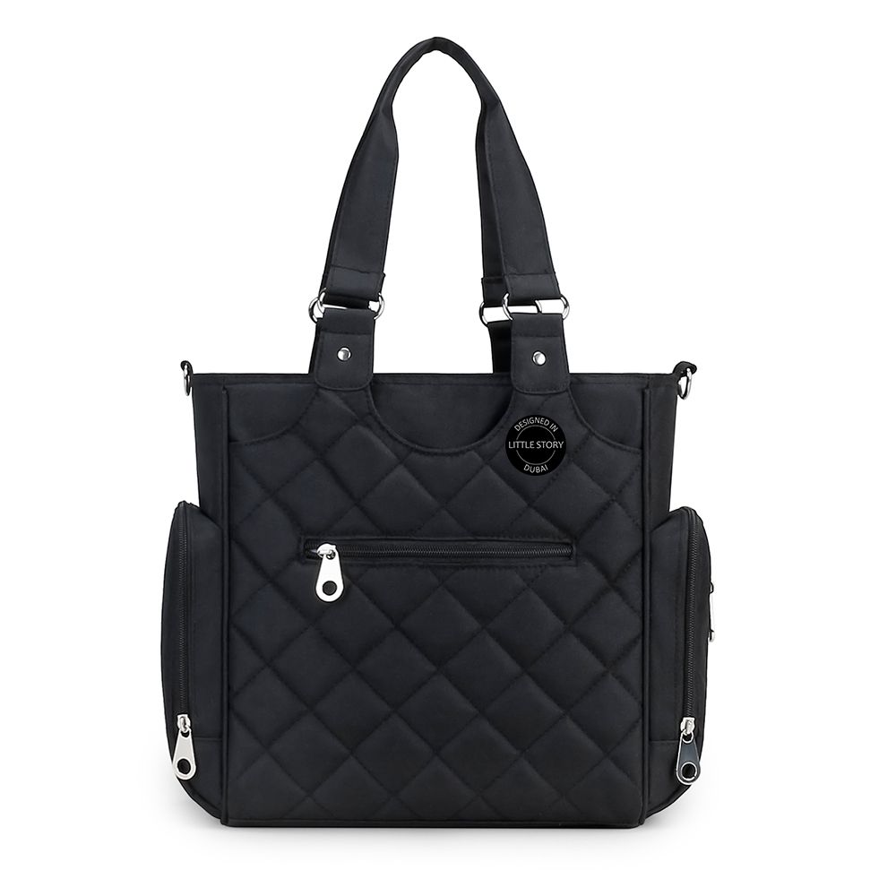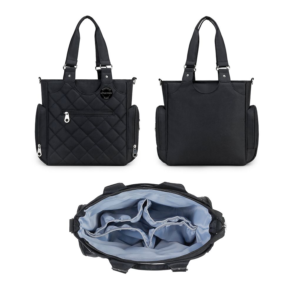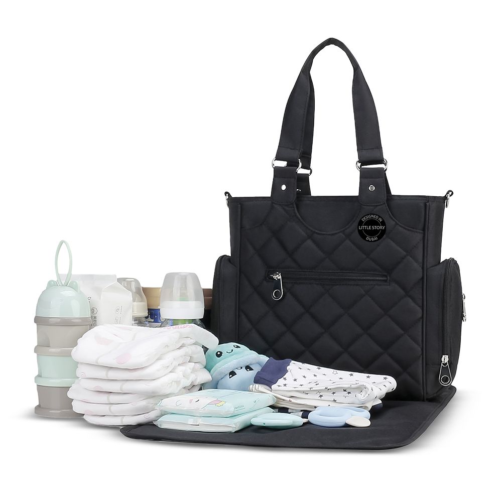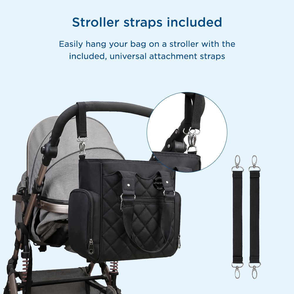 Little Story Set of 7 - Quilted Diaper Bag with Stroller Straps and Changing Mat - Black