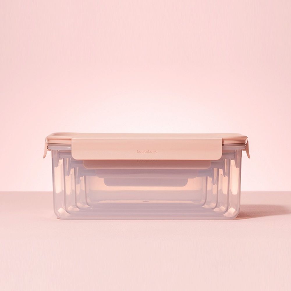 Keep your food fresh and organized with the LocknLock Classic Plus Rectangle 385ml Food Container in stylish pink
