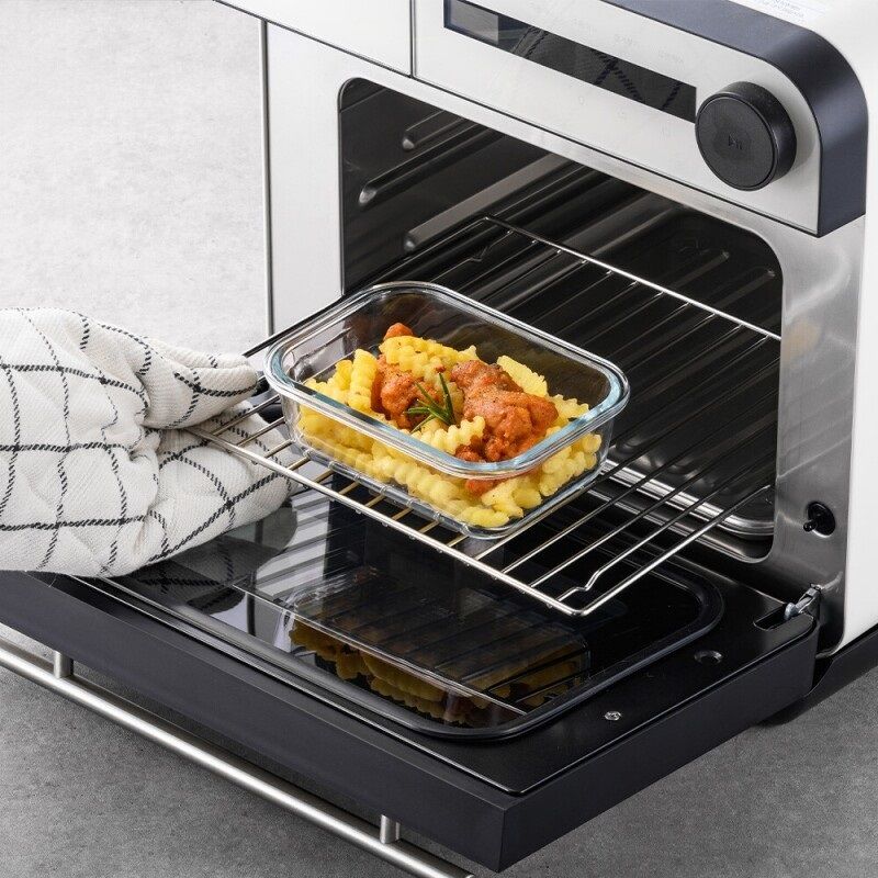 LocknLock Clear Glass Square 750ml White - Durable, Airtight, Heat-Resistant Food Storage Container