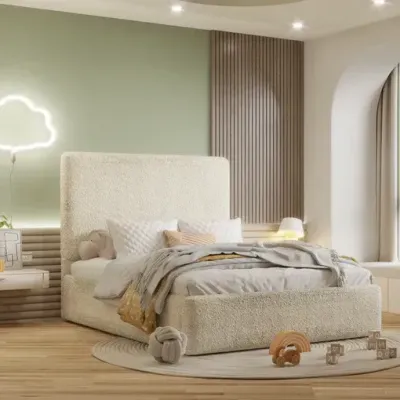 Love Nest Kids Bed W 90 x L 190-Boucle White with 1-Year Warranty