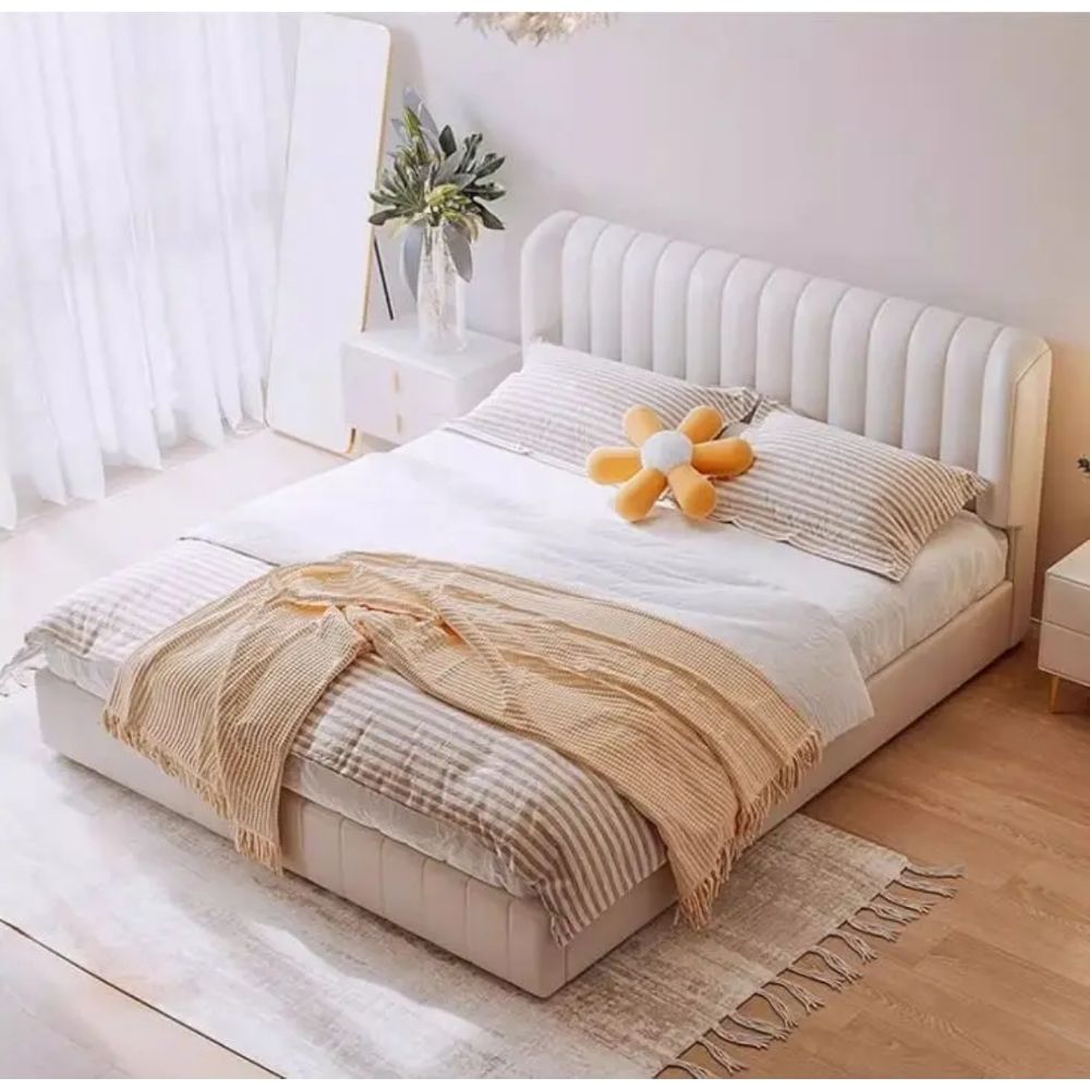 Luxury Velvet Upholstered Bed – Vertical Panel Headboard – Elegant Off White Design – King Size 180 × 200