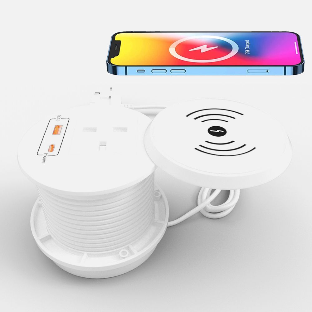Mahmayi BST-YM012-A5 Modern Desk Recessed Socket Power with Wireless Charging Cover AC Outlet Strip and USB Port Efficient Chargeable Device Ideal for Home and Office - White