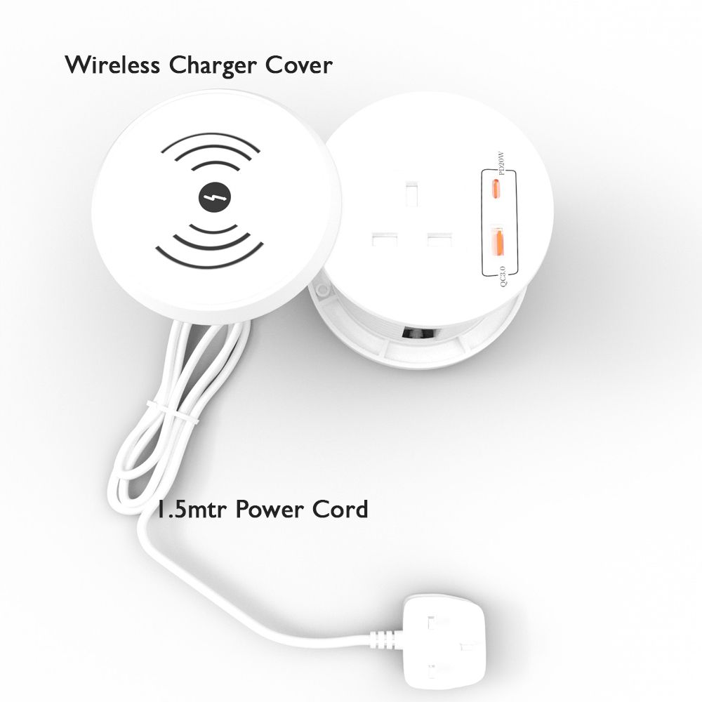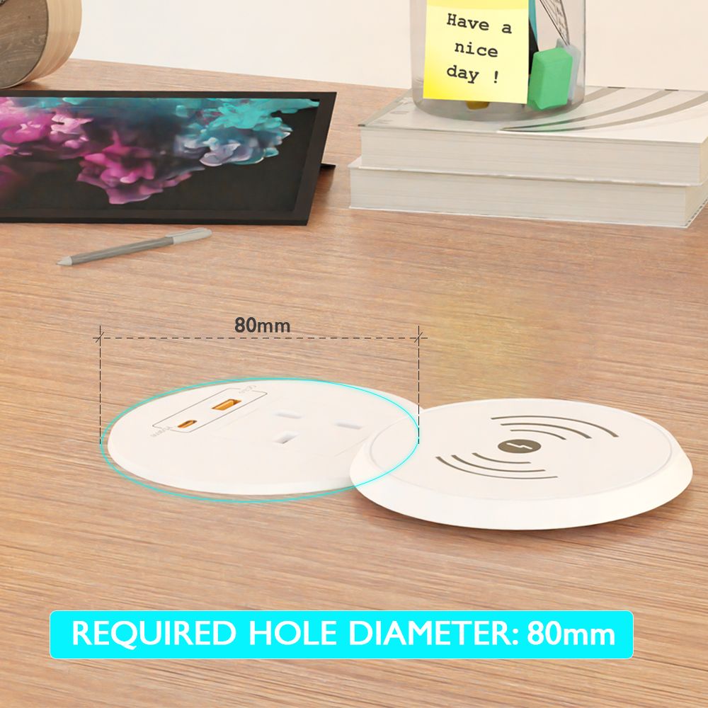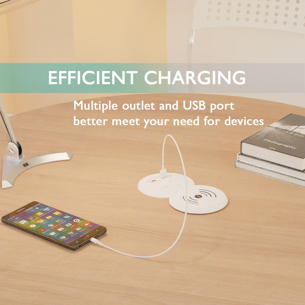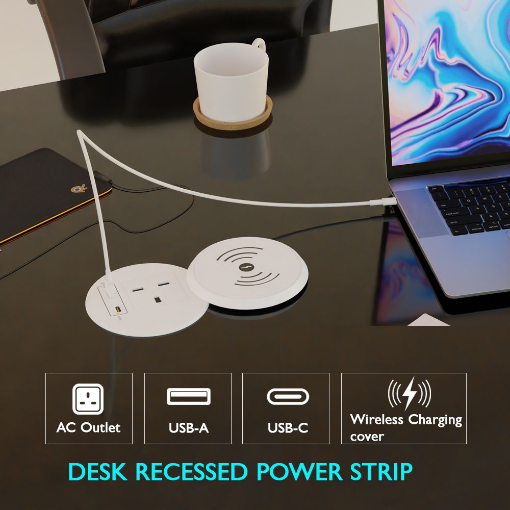 Mahmayi BST-YM012-A5 Modern Desk Recessed Socket Power with Wireless Charging Cover, AC Outlet Strip and USB Port Efficient Chargeable Device Ideal for Home and Office - White