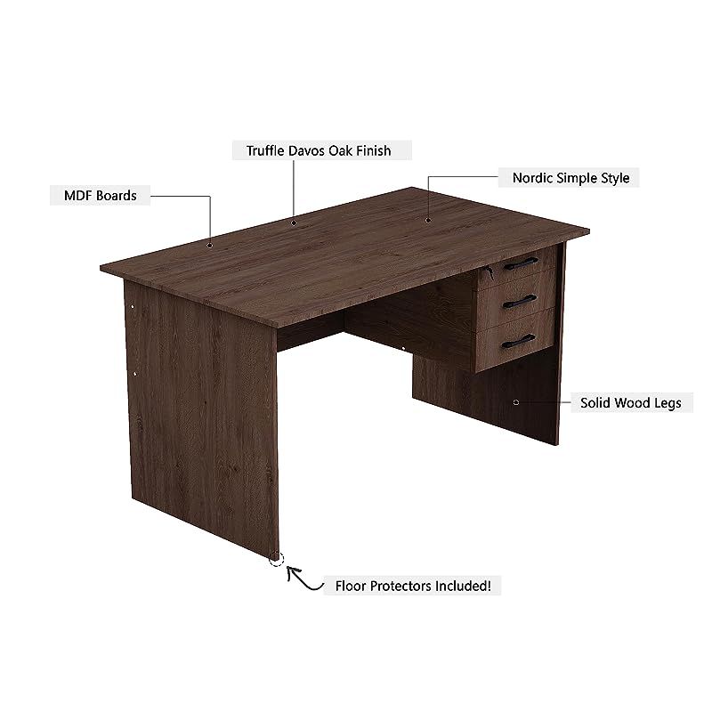 Computer Desk, MP1 140x80 Writing Table with Hanging Pedestal, Modern Home Office Desks for Student Study Laptop PC - Brown