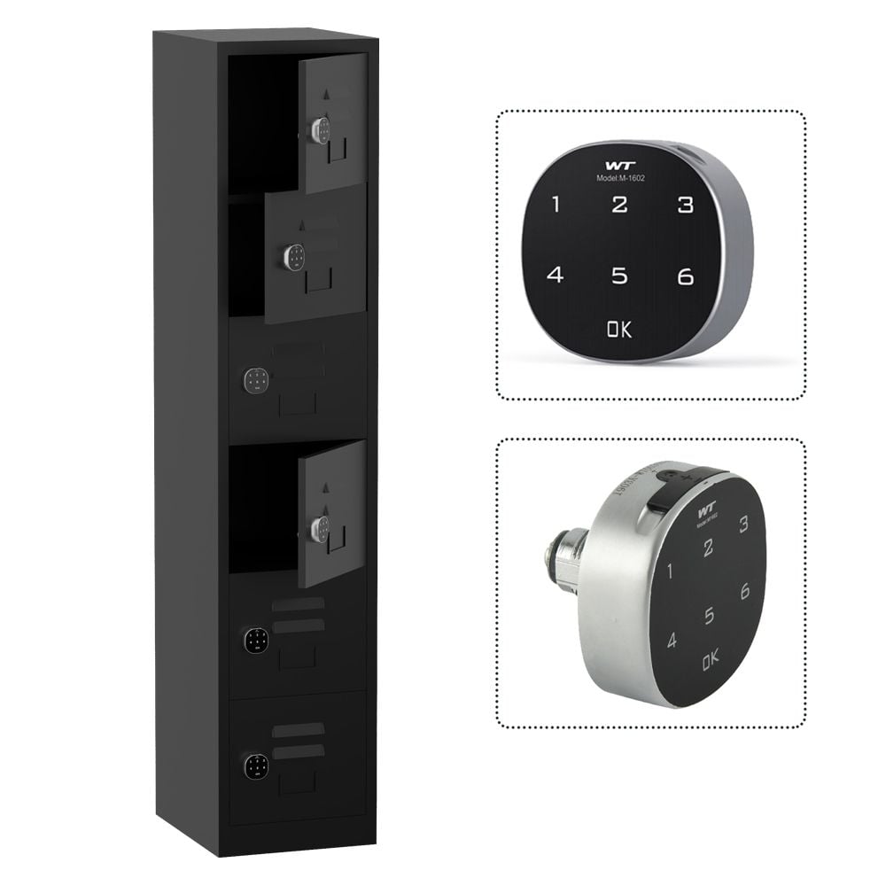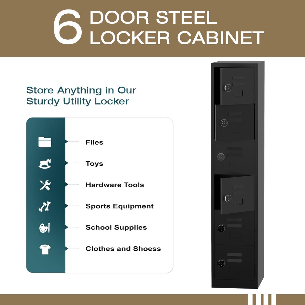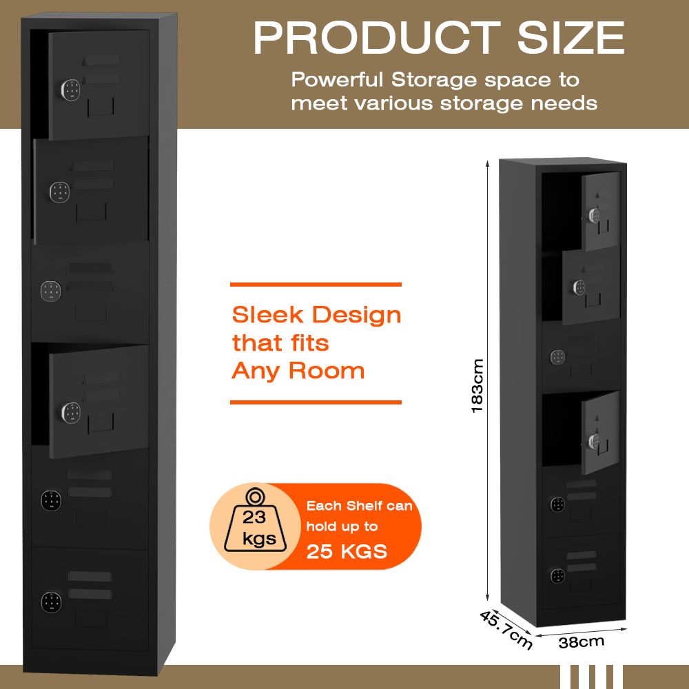 Modern 6 Door Locker with Digital Lock Storage Strong, Safe and Durable Privacy Door Locker, Documents, Cash, Jewelry Safety for Home, Garage, Hotel, Office - Black