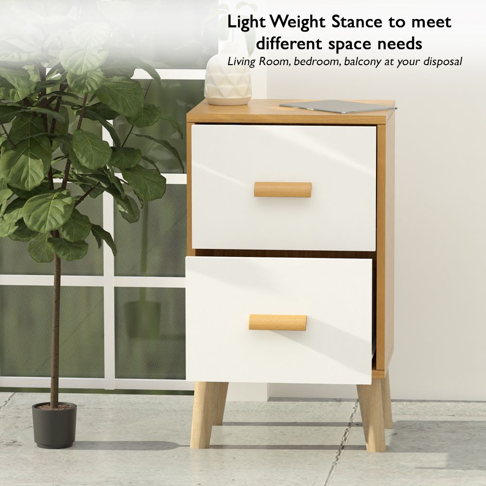 Mahmayi Modern Multifunctional Nightstand Wooden Side Table Storage Unit with Two Drawer Home Living Room Bedroom Furniture Pack of 1, White Walnut