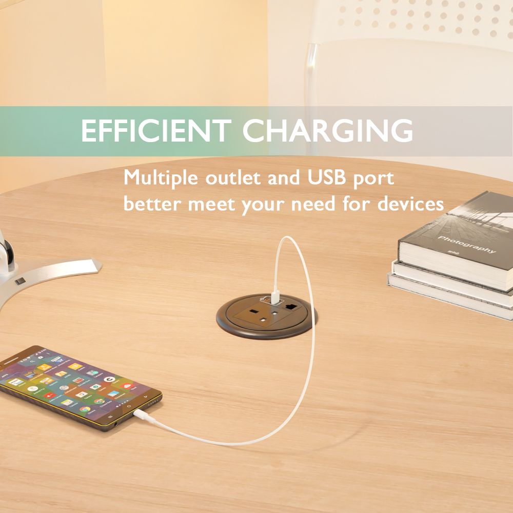 MULTIPLE CHARGING PORTS: Equipped with an AC outlet, USB-A, USB-C, and a LAN network connection, this socket provides versatile charging options for all your devices.