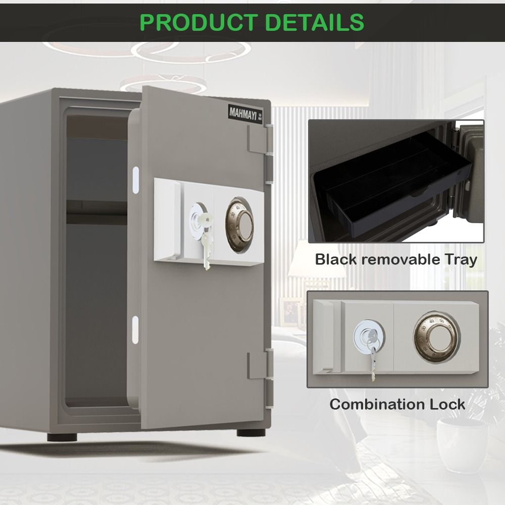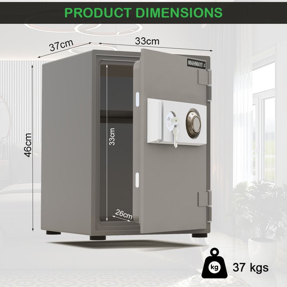 Mahmayi Secure SD102T Fire Safe, Fireproof and Theft Resistant with Key and Dial Combination Lock Ideal for Home and Offices - Grey