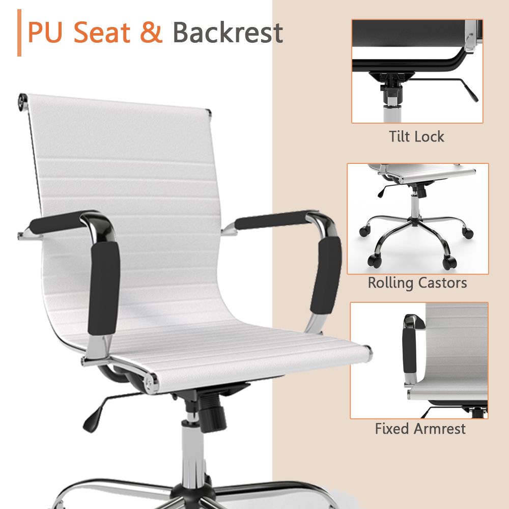 Elegant Design: Embrace sophistication with the Mahmayi Ultimate 031L Eames Replica Ribbed PU Chrome Lowback Chair, featuring a sleek ribbed design that adds a touch of modern elegance to any office space.