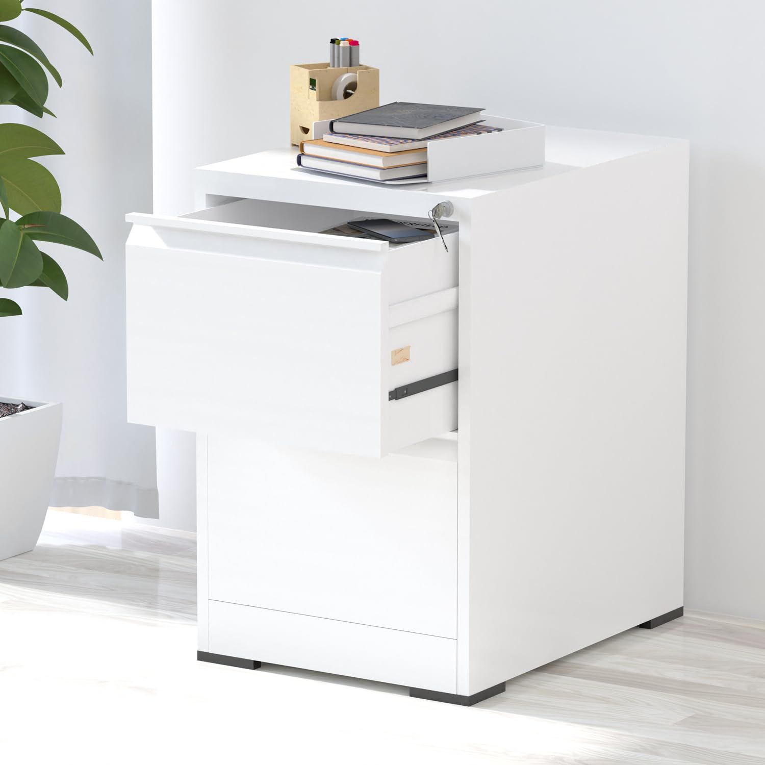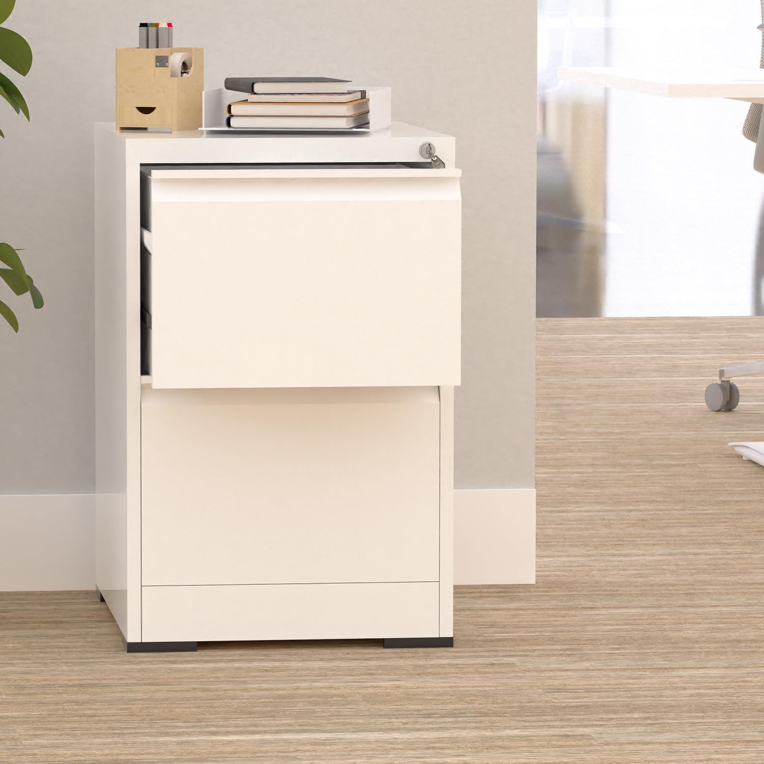 Mahmayi Victory Steel Japan OEM File Cabinet with Key Lock, Portable Cabinet with 2 Storage Drawer, Vertical File Cabinet, Ideal for Office - White