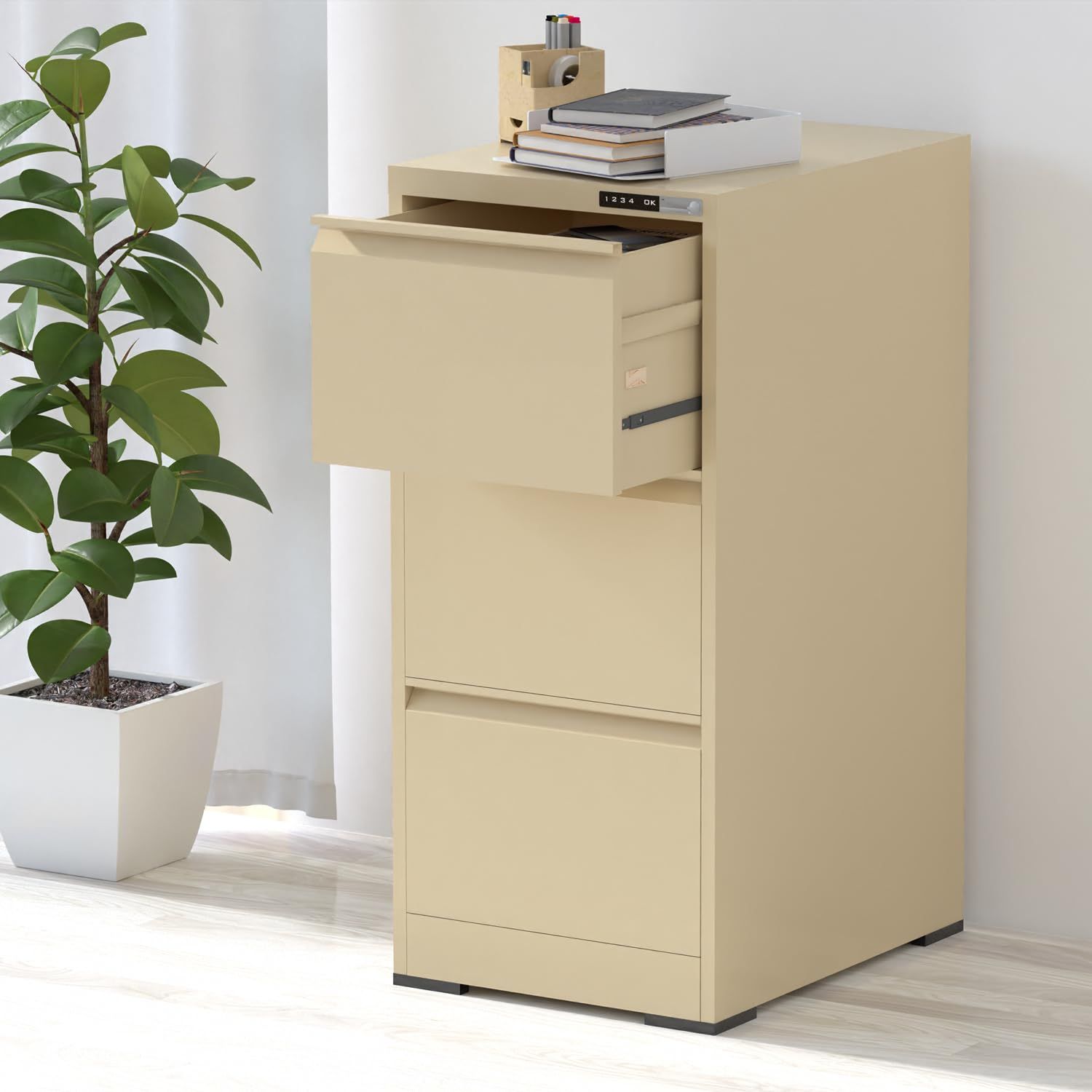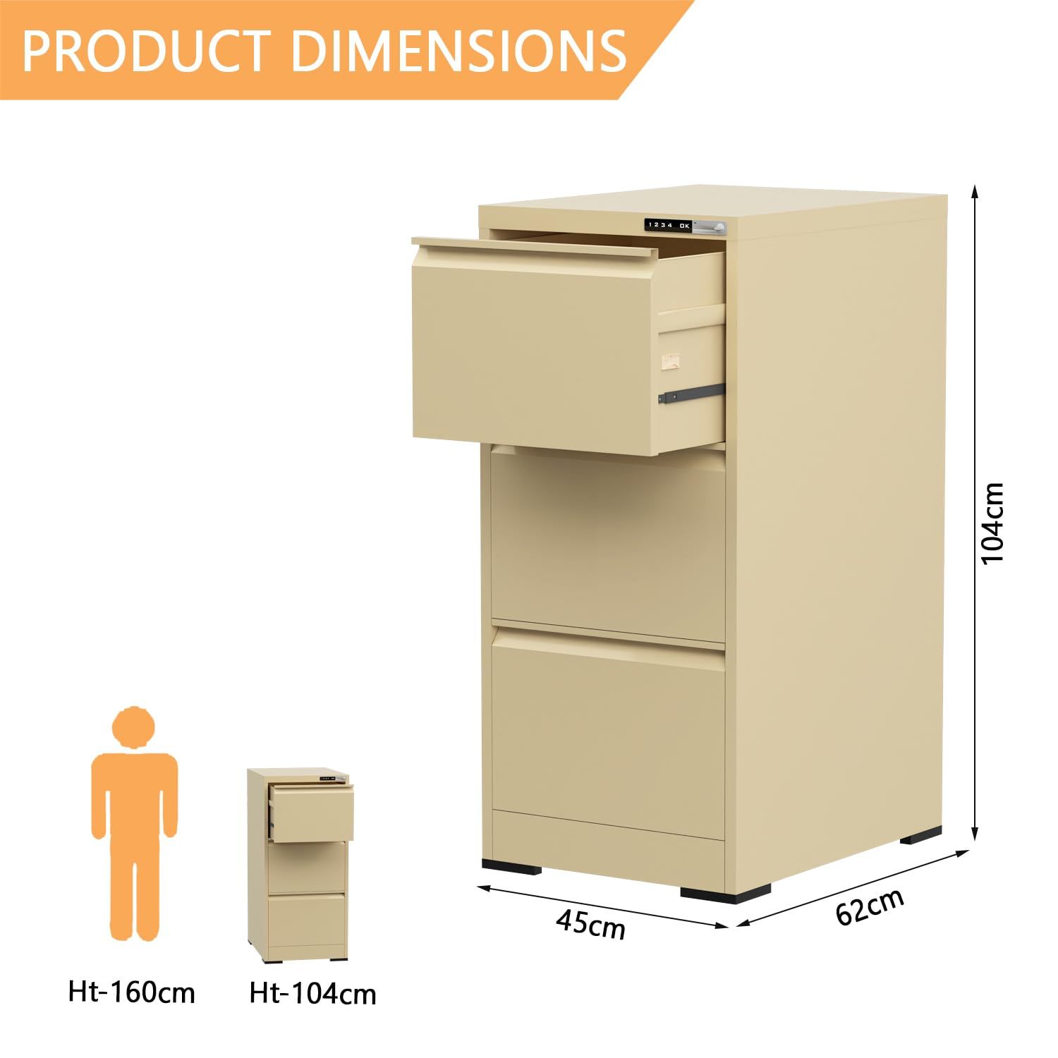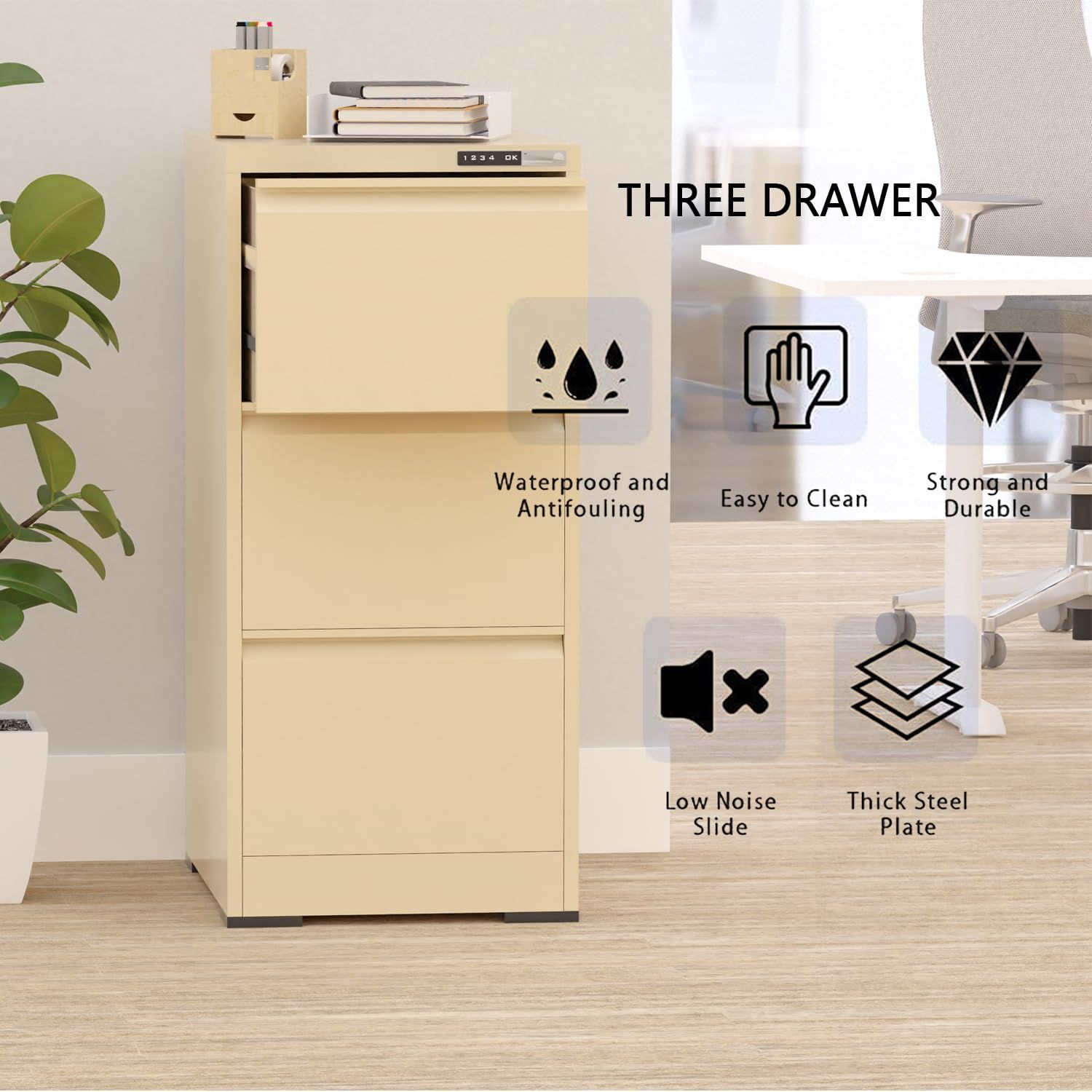 Mahmayi Victory Steel Japan OEM File Cabinet with Touch Screen Digital Lock with USB Charging Support, Portable Cabinet with 3 Storage Drawer, Vertical File Cabinet, Ideal for Office - Beige