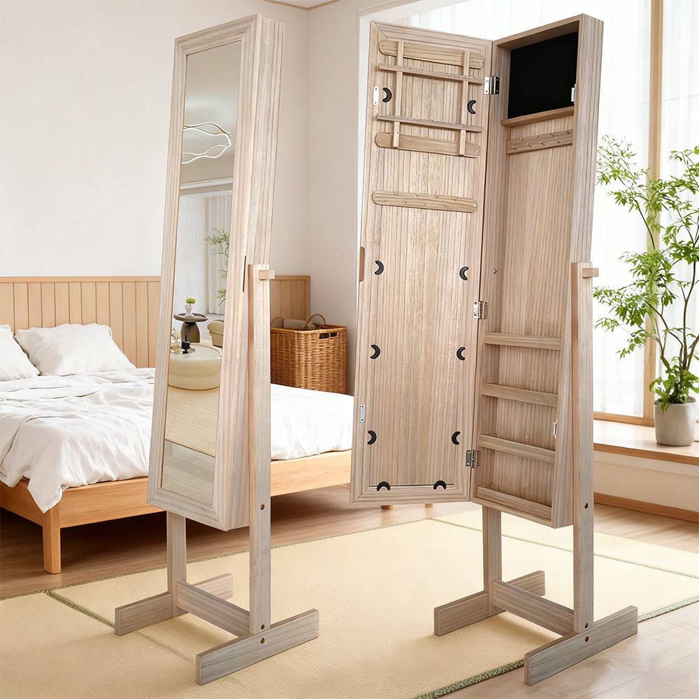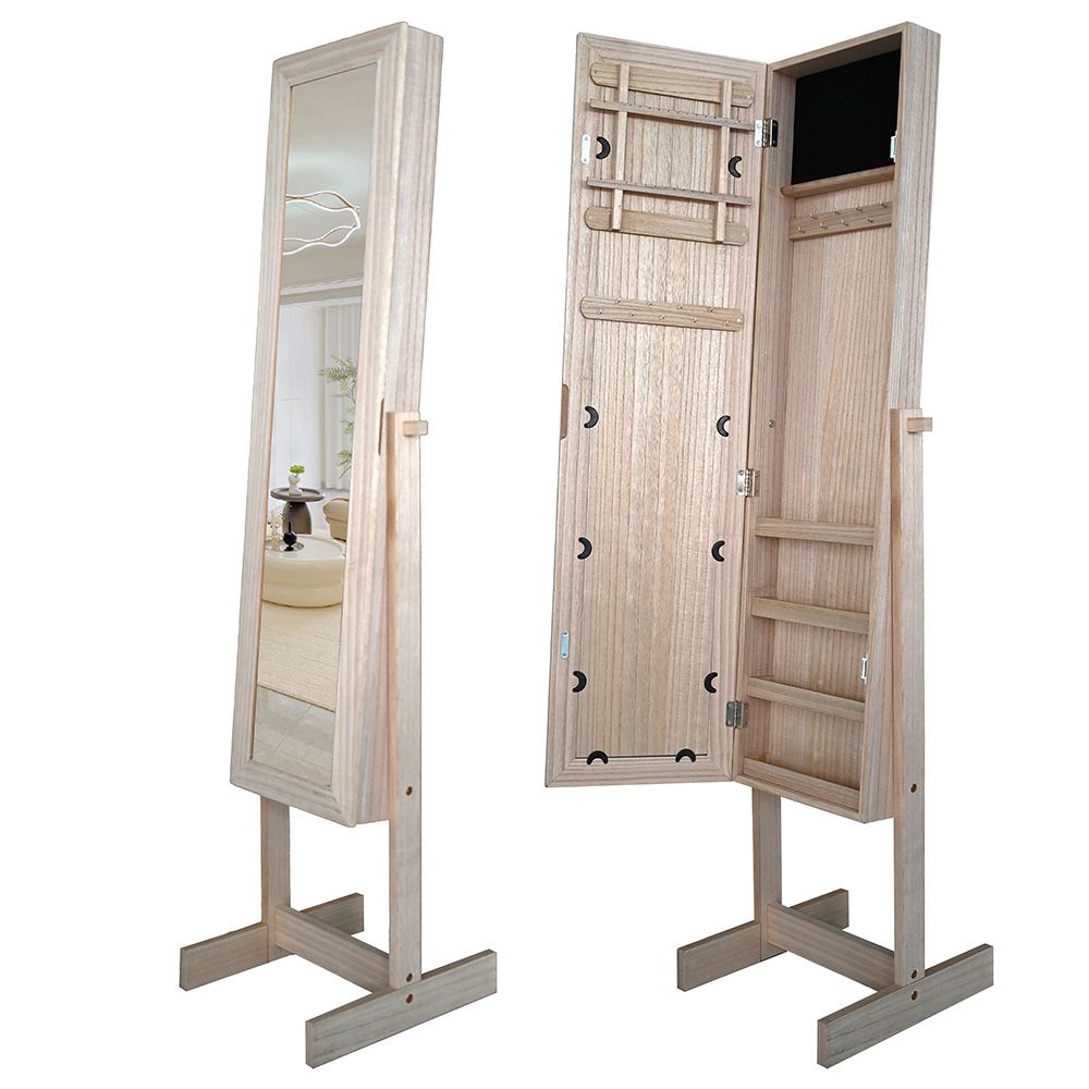 Manny Free- Standing Jewelry Cabinet With Mirror- Natural Oak