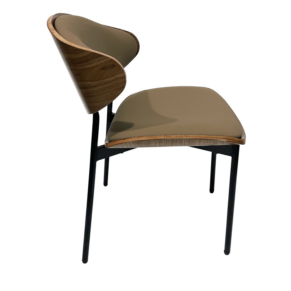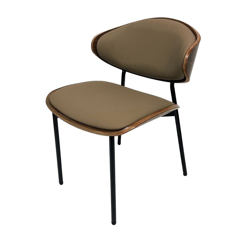 Maple Home Mid-Century Modern Dining Chair Faux Leather Accent Chair with Walnut Finish & Metal Frame for Dining Kitchen Living Room(Kakki)