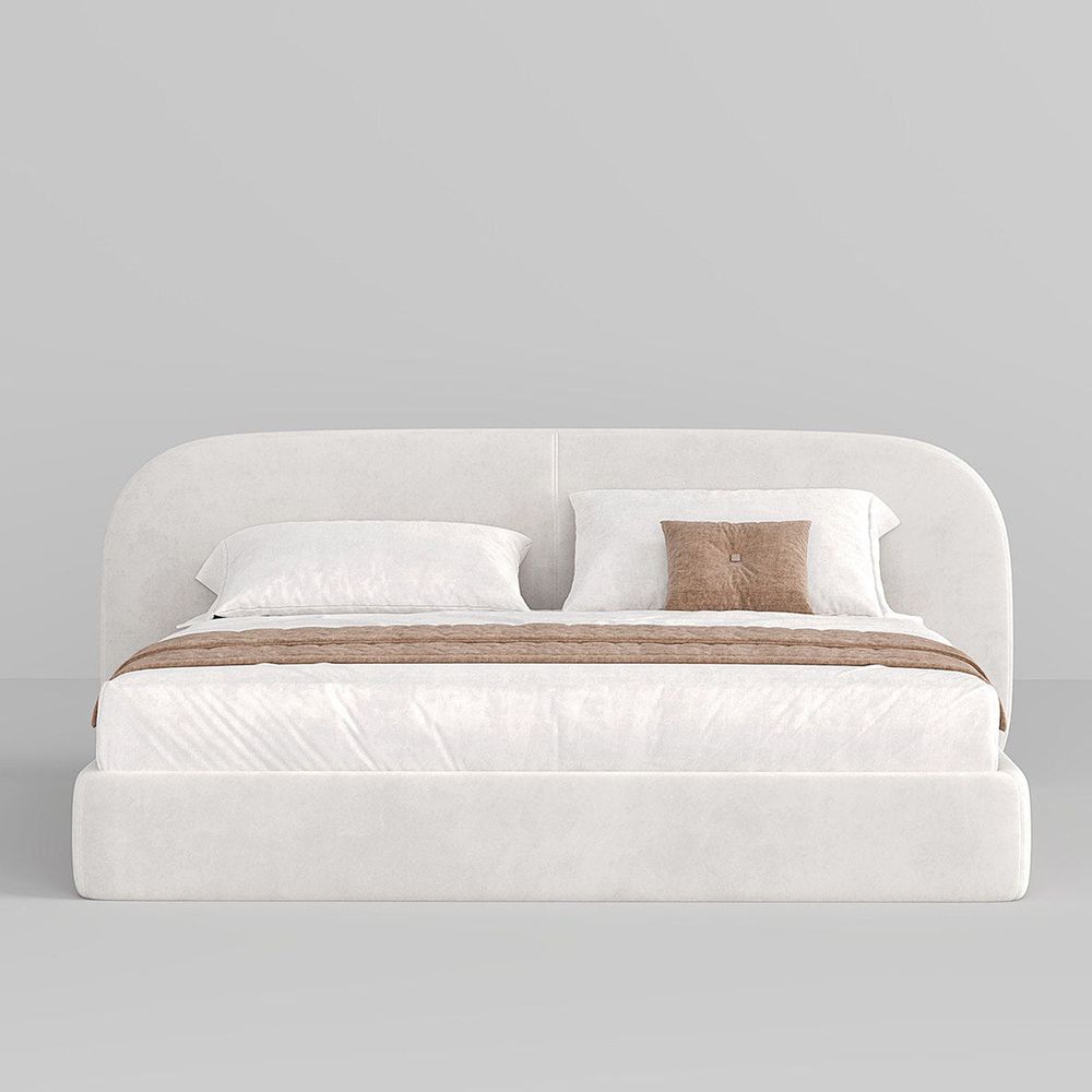 Sophisticated Design & Premium Velvet Material: Featuring an off-white velvet upholstery and a smoothly curved headboard, this bed frame exudes modern luxury. The velvet fabric offers a soft, cozy touch while elevating the aesthetic of your bedroom.