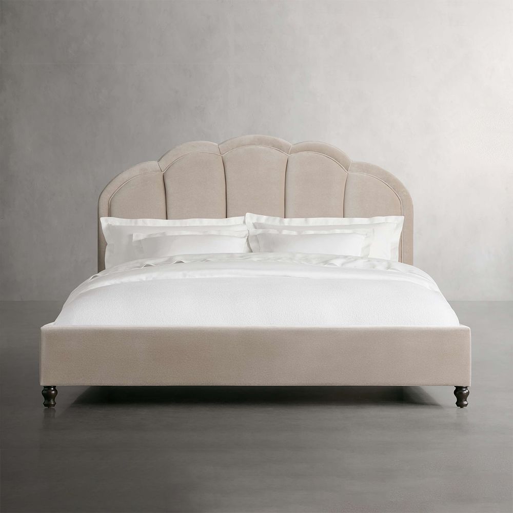 Scalloped Velvet Bed Frame Upholstered Wood Frame Bed Premium Bedroom Furniture Beige (Super King 200*200cm)